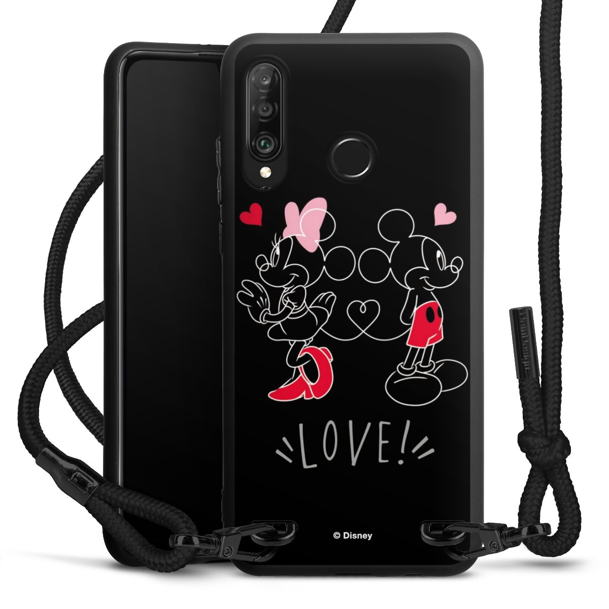 The matt black silicone case is made of flexible TPU (thermoplastic polyurethane) and offers robust protection. The durable, unbreakable material makes the cover flexible and dimensionally stable at the same time. The matte surface makes your design stand out more and is less susceptible to fingerprints and dirt. The stylish trend accessory fits comfortably in the hand and is perfectly complemented by the fabric (polyester) mobile phone strap. The braided fabric strap is approx. 1.70 metres long with a diameter of approx. 0.5 cm. Due to the special knotting technique, the length of the strap can be adjusted by simply pulling it, so that you can adapt it individually to your wishes. The practical case to wear around your neck is available with the fabric strap in black. As a little icing on the cake, we have provided the strap with a chic metal fastener in matt black. The strap is securely fastened to the case with loops made of high-quality genuine leather and press studs. The ends of the fabric strap are covered with metallic end caps and thus protected from fraying.