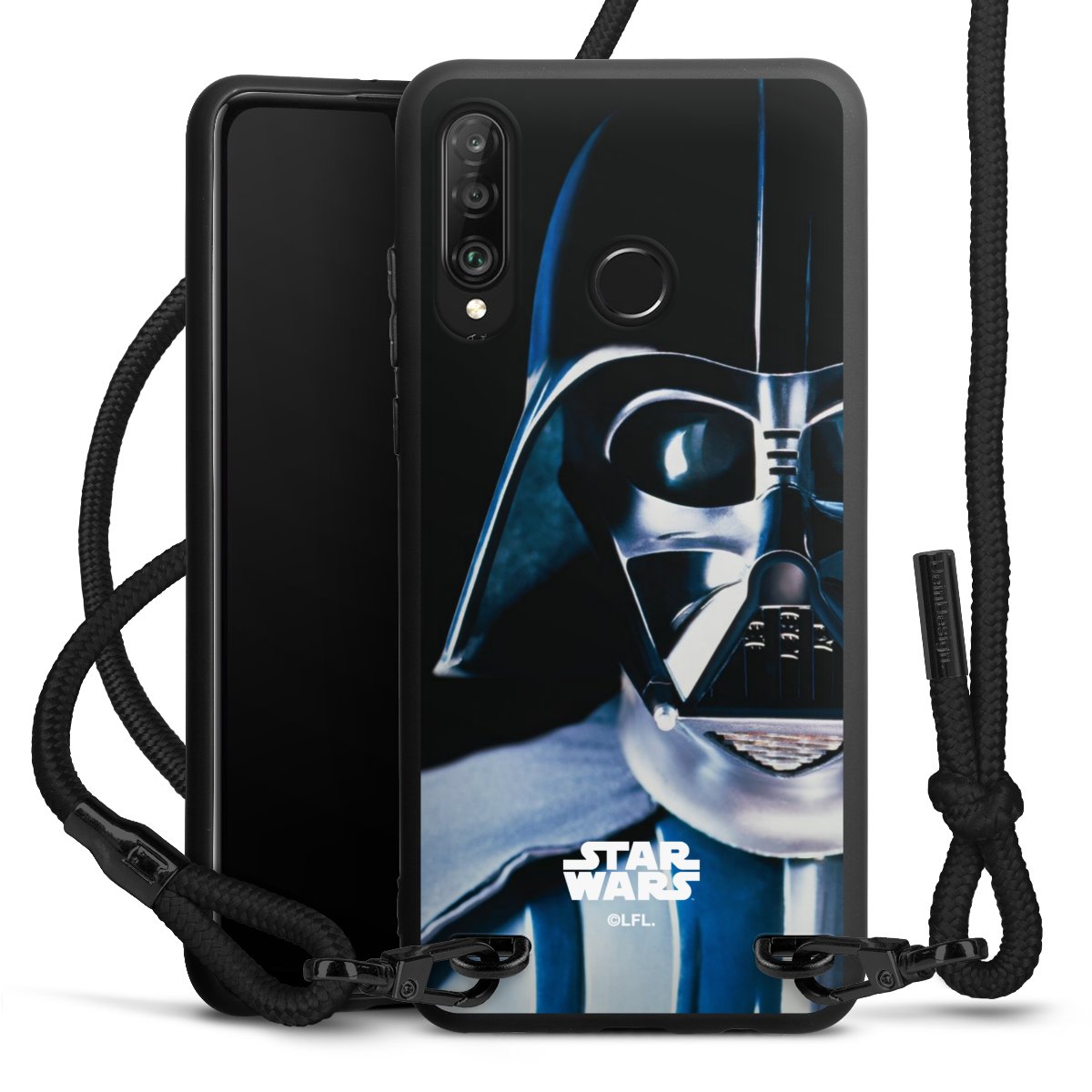 The matt black silicone case is made of flexible TPU (thermoplastic polyurethane) and offers robust protection. The durable, unbreakable material makes the cover flexible and dimensionally stable at the same time. The matte surface makes your design stand out more and is less susceptible to fingerprints and dirt. The stylish trend accessory fits comfortably in the hand and is perfectly complemented by the fabric (polyester) mobile phone strap. The braided fabric strap is approx. 1.70 metres long with a diameter of approx. 0.5 cm. Due to the special knotting technique, the length of the strap can be adjusted by simply pulling it, so that you can adapt it individually to your wishes. The practical case to wear around your neck is available with the fabric strap in black. As a little icing on the cake, we have provided the strap with a chic metal fastener in matt black. The strap is securely fastened to the case with loops made of high-quality genuine leather and press studs. The ends of the fabric strap are covered with metallic end caps and thus protected from fraying.