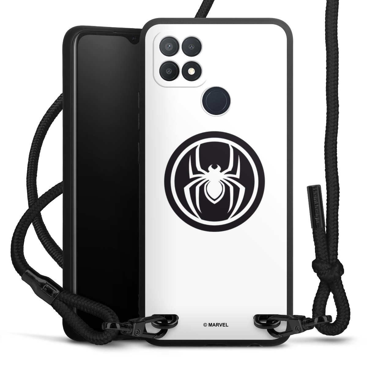 The matt black silicone case is made of flexible TPU (thermoplastic polyurethane) and offers robust protection. The durable, unbreakable material makes the cover flexible and dimensionally stable at the same time. The matte surface makes your design stand out more and is less susceptible to fingerprints and dirt. The stylish trend accessory fits comfortably in the hand and is perfectly complemented by the fabric (polyester) mobile phone strap. The braided fabric strap is approx. 1.70 metres long with a diameter of approx. 0.5 cm. Due to the special knotting technique, the length of the strap can be adjusted by simply pulling it, so that you can adapt it individually to your wishes. The practical case to wear around your neck is available with the fabric strap in black. As a little icing on the cake, we have provided the strap with a chic metal fastener in matt black. The strap is securely fastened to the case with loops made of high-quality genuine leather and press studs. The ends of the fabric strap are covered with metallic end caps and thus protected from fraying.