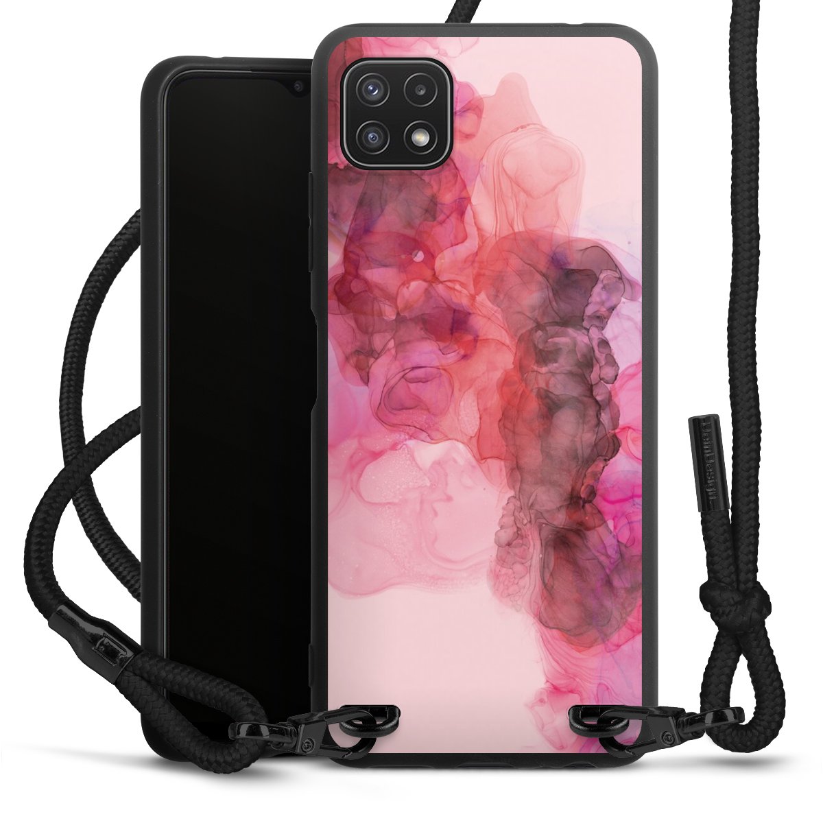 We use the solid direct print process for this phone case, which is why the print area only covers the back and the edge remains unprinted. The case to wear around your neck can be ordered unprinted, fully printed, or partially printed. For your design, either choose one of our exclusive shop motifs or get creative and create your own design, for example with photos and overlays. Design your own personal trend accessory and make an individual statement on the streets!