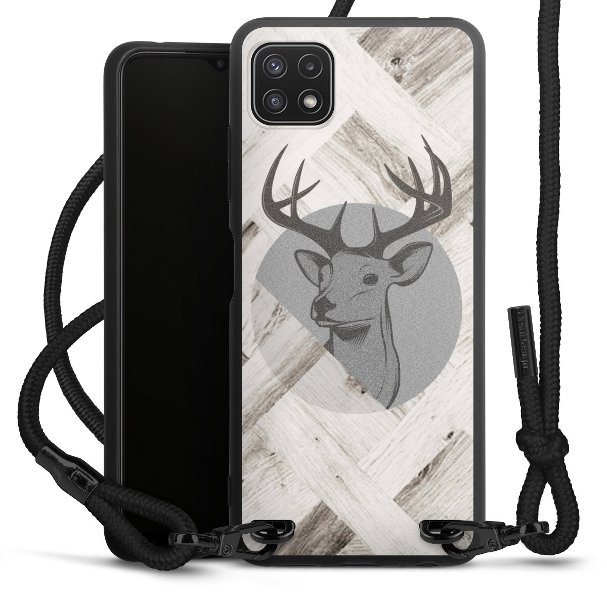 We use the solid direct print process for this phone case, which is why the print area only covers the back and the edge remains unprinted. The case to wear around your neck can be ordered unprinted, fully printed, or partially printed. For your design, either choose one of our exclusive shop motifs or get creative and create your own design, for example with photos and overlays. Design your own personal trend accessory and make an individual statement on the streets!