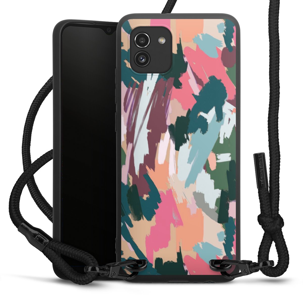 We use the solid direct print process for this phone case, which is why the print area only covers the back and the edge remains unprinted. The case to wear around your neck can be ordered unprinted, fully printed, or partially printed. For your design, either choose one of our exclusive shop motifs or get creative and create your own design, for example with photos and overlays. Design your own personal trend accessory and make an individual statement on the streets!