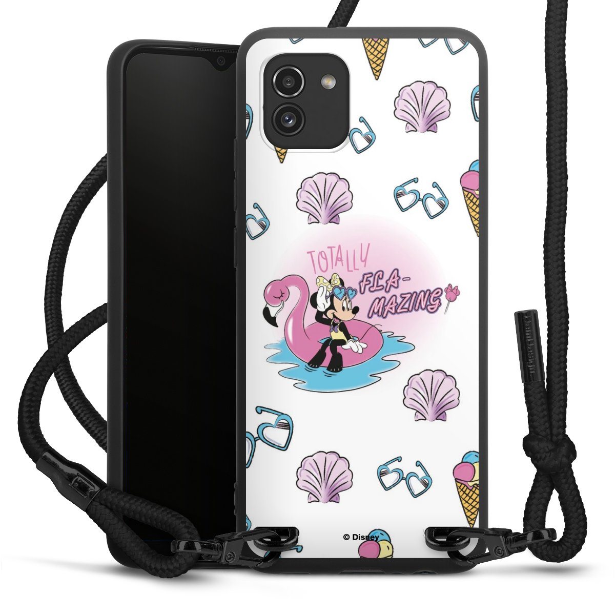 We use the solid direct print process for this phone case, which is why the print area only covers the back and the edge remains unprinted. The case to wear around your neck can be ordered unprinted, fully printed, or partially printed. For your design, either choose one of our exclusive shop motifs or get creative and create your own design, for example with photos and overlays. Design your own personal trend accessory and make an individual statement on the streets!