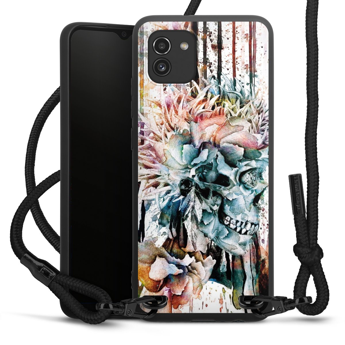 We use the solid direct print process for this phone case, which is why the print area only covers the back and the edge remains unprinted. The case to wear around your neck can be ordered unprinted, fully printed, or partially printed. For your design, either choose one of our exclusive shop motifs or get creative and create your own design, for example with photos and overlays. Design your own personal trend accessory and make an individual statement on the streets!