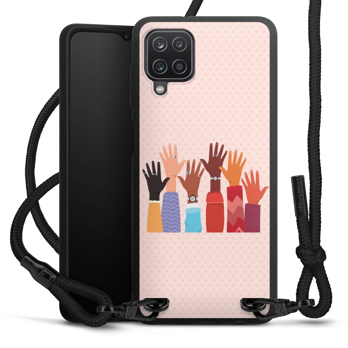We use the solid direct print process for this phone case, which is why the print area only covers the back and the edge remains unprinted. The case to wear around your neck can be ordered unprinted, fully printed, or partially printed. For your design, either choose one of our exclusive shop motifs or get creative and create your own design, for example with photos and overlays. Design your own personal trend accessory and make an individual statement on the streets!