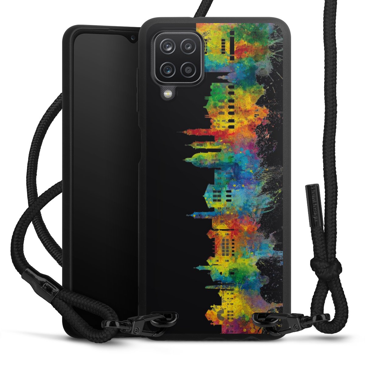 We use the solid direct print process for this phone case, which is why the print area only covers the back and the edge remains unprinted. The case to wear around your neck can be ordered unprinted, fully printed, or partially printed. For your design, either choose one of our exclusive shop motifs or get creative and create your own design, for example with photos and overlays. Design your own personal trend accessory and make an individual statement on the streets!