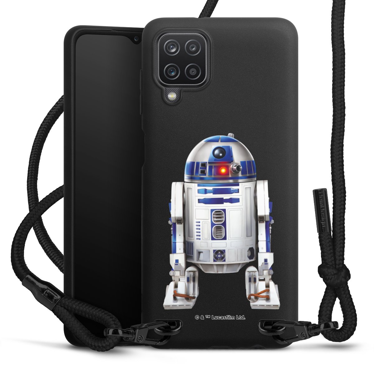 The matt black silicone case is made of flexible TPU (thermoplastic polyurethane) and offers robust protection. The durable, unbreakable material makes the cover flexible and dimensionally stable at the same time. The matte surface makes your design stand out more and is less susceptible to fingerprints and dirt. The stylish trend accessory fits comfortably in the hand and is perfectly complemented by the fabric (polyester) mobile phone strap. The braided fabric strap is approx. 1.70 metres long with a diameter of approx. 0.5 cm. Due to the special knotting technique, the length of the strap can be adjusted by simply pulling it, so that you can adapt it individually to your wishes. The practical case to wear around your neck is available with the fabric strap in black. As a little icing on the cake, we have provided the strap with a chic metal fastener in matt black. The strap is securely fastened to the case with loops made of high-quality genuine leather and press studs. The ends of the fabric strap are covered with metallic end caps and thus protected from fraying.