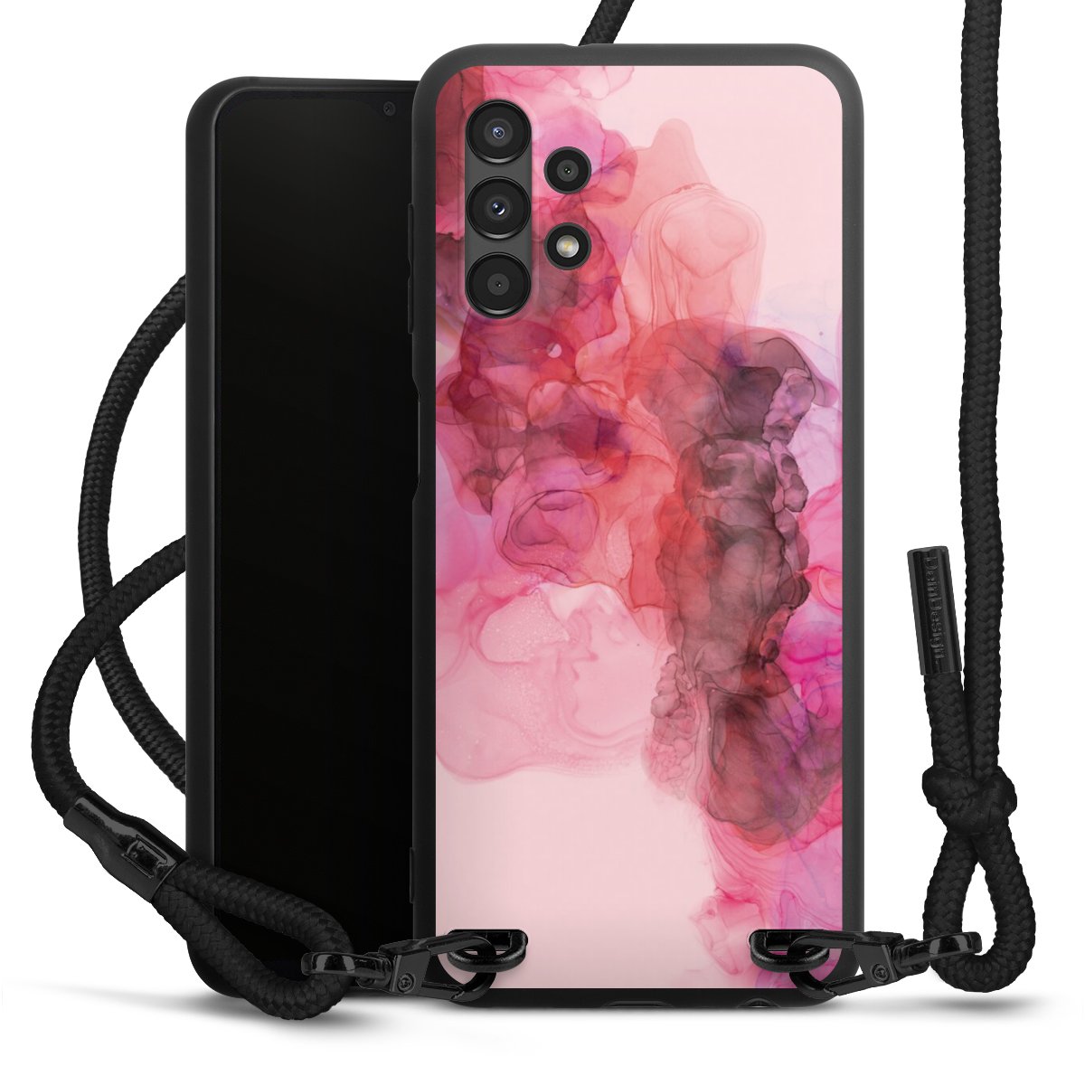 We use the solid direct print process for this phone case, which is why the print area only covers the back and the edge remains unprinted. The case to wear around your neck can be ordered unprinted, fully printed, or partially printed. For your design, either choose one of our exclusive shop motifs or get creative and create your own design, for example with photos and overlays. Design your own personal trend accessory and make an individual statement on the streets!