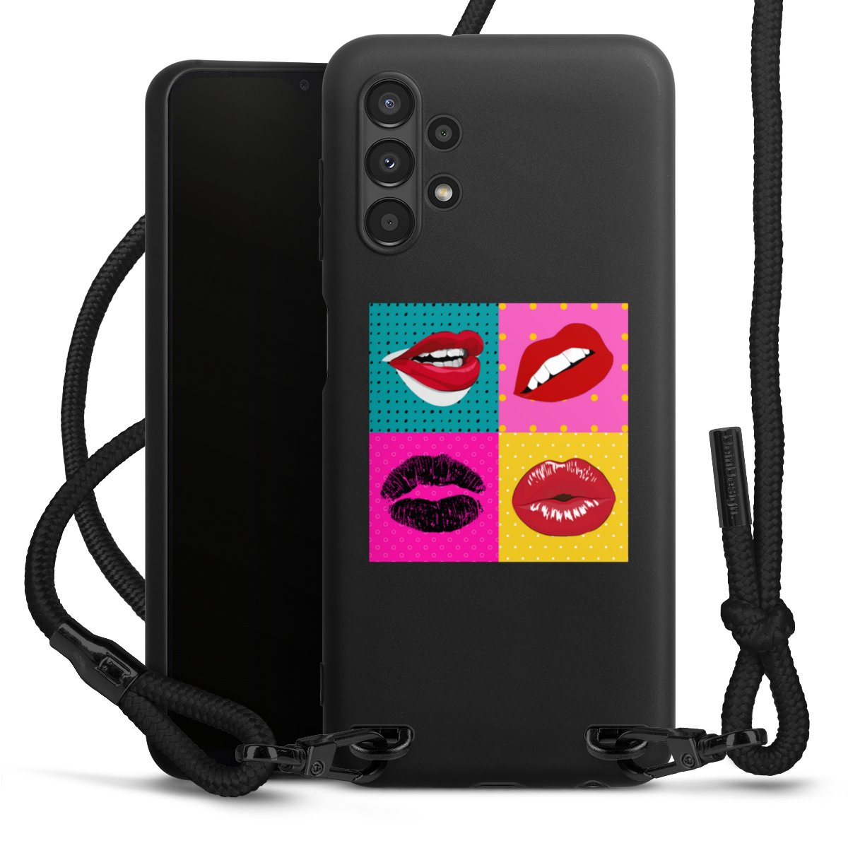 We use the solid direct print process for this phone case, which is why the print area only covers the back and the edge remains unprinted. The case to wear around your neck can be ordered unprinted, fully printed, or partially printed. For your design, either choose one of our exclusive shop motifs or get creative and create your own design, for example with photos and overlays. Design your own personal trend accessory and make an individual statement on the streets!