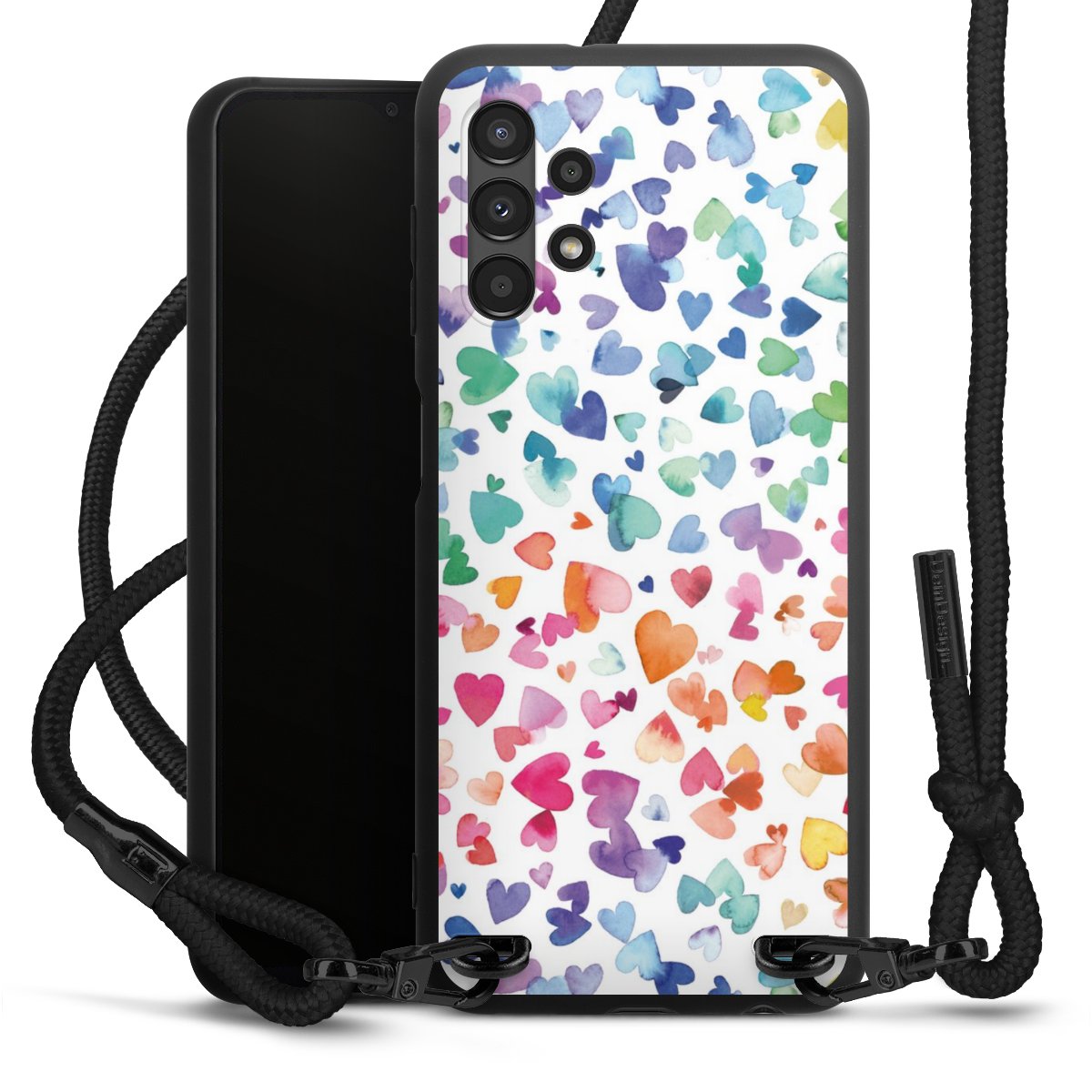 We use the solid direct print process for this phone case, which is why the print area only covers the back and the edge remains unprinted. The case to wear around your neck can be ordered unprinted, fully printed, or partially printed. For your design, either choose one of our exclusive shop motifs or get creative and create your own design, for example with photos and overlays. Design your own personal trend accessory and make an individual statement on the streets!