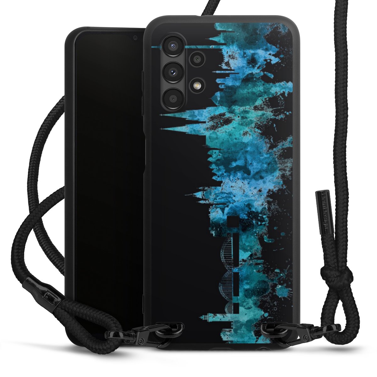 We use the solid direct print process for this phone case, which is why the print area only covers the back and the edge remains unprinted. The case to wear around your neck can be ordered unprinted, fully printed, or partially printed. For your design, either choose one of our exclusive shop motifs or get creative and create your own design, for example with photos and overlays. Design your own personal trend accessory and make an individual statement on the streets!