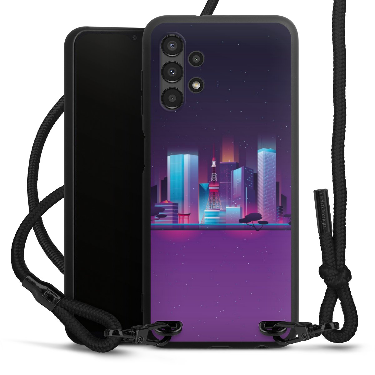 We use the solid direct print process for this phone case, which is why the print area only covers the back and the edge remains unprinted. The case to wear around your neck can be ordered unprinted, fully printed, or partially printed. For your design, either choose one of our exclusive shop motifs or get creative and create your own design, for example with photos and overlays. Design your own personal trend accessory and make an individual statement on the streets!