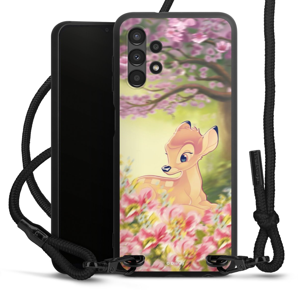 The matt black silicone case is made of flexible TPU (thermoplastic polyurethane) and offers robust protection. The durable, unbreakable material makes the cover flexible and dimensionally stable at the same time. The matte surface makes your design stand out more and is less susceptible to fingerprints and dirt. The stylish trend accessory fits comfortably in the hand and is perfectly complemented by the fabric (polyester) mobile phone strap. The braided fabric strap is approx. 1.70 metres long with a diameter of approx. 0.5 cm. Due to the special knotting technique, the length of the strap can be adjusted by simply pulling it, so that you can adapt it individually to your wishes. The practical case to wear around your neck is available with the fabric strap in black. As a little icing on the cake, we have provided the strap with a chic metal fastener in matt black. The strap is securely fastened to the case with loops made of high-quality genuine leather and press studs. The ends of the fabric strap are covered with metallic end caps and thus protected from fraying.