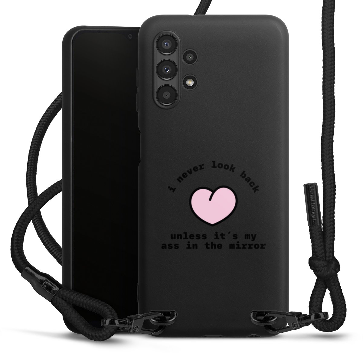 We use the solid direct print process for this phone case, which is why the print area only covers the back and the edge remains unprinted. The case to wear around your neck can be ordered unprinted, fully printed, or partially printed. For your design, either choose one of our exclusive shop motifs or get creative and create your own design, for example with photos and overlays. Design your own personal trend accessory and make an individual statement on the streets!