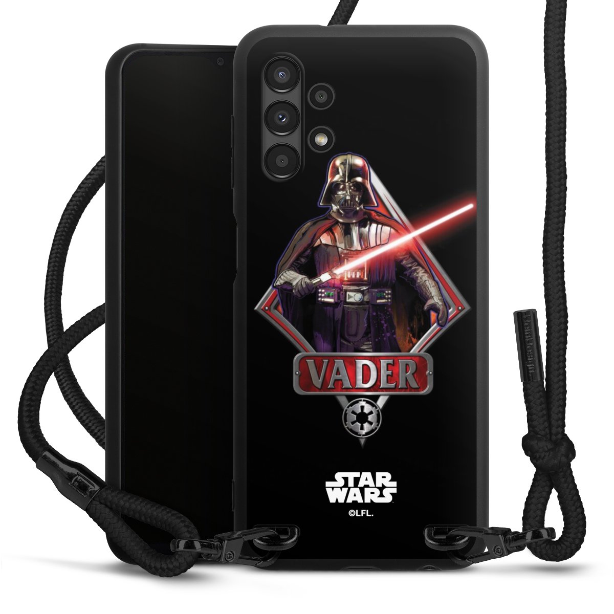 Pure Black: Phone case, fabric strap and metal details in stylish matt black.