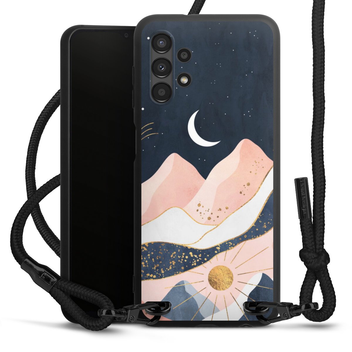 We use the solid direct print process for this phone case, which is why the print area only covers the back and the edge remains unprinted. The case to wear around your neck can be ordered unprinted, fully printed, or partially printed. For your design, either choose one of our exclusive shop motifs or get creative and create your own design, for example with photos and overlays. Design your own personal trend accessory and make an individual statement on the streets!