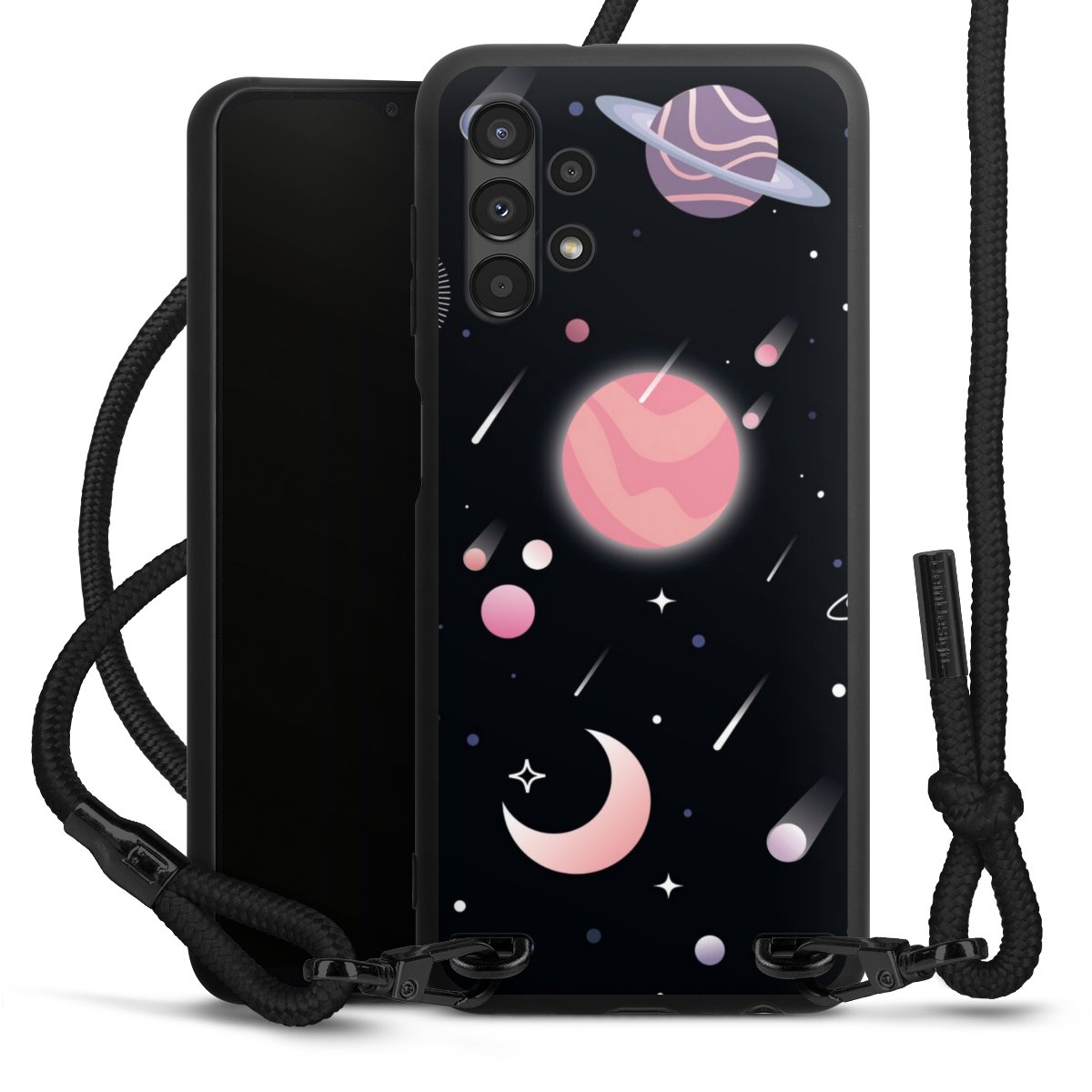 We use the solid direct print process for this phone case, which is why the print area only covers the back and the edge remains unprinted. The case to wear around your neck can be ordered unprinted, fully printed, or partially printed. For your design, either choose one of our exclusive shop motifs or get creative and create your own design, for example with photos and overlays. Design your own personal trend accessory and make an individual statement on the streets!