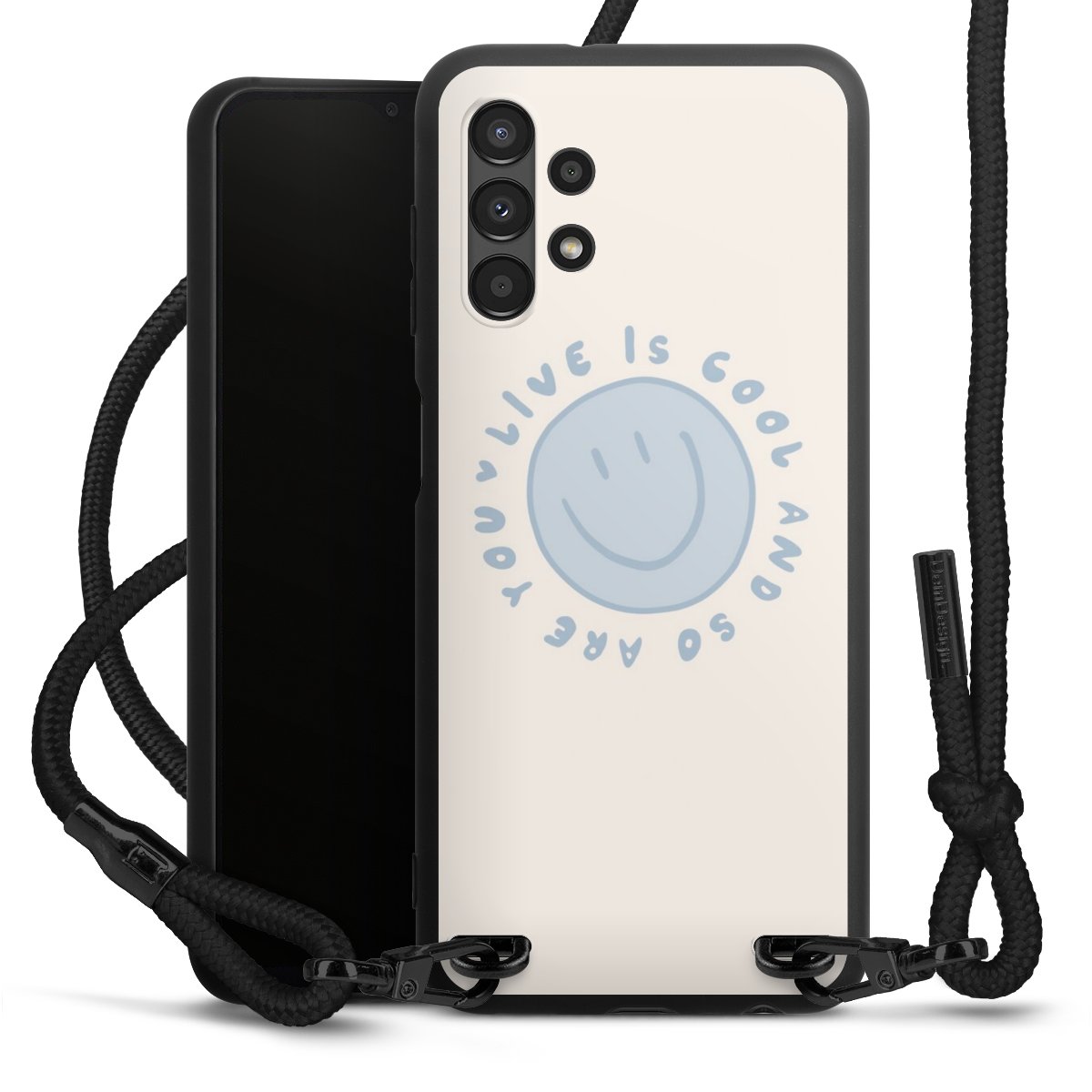 We use the solid direct print process for this phone case, which is why the print area only covers the back and the edge remains unprinted. The case to wear around your neck can be ordered unprinted, fully printed, or partially printed. For your design, either choose one of our exclusive shop motifs or get creative and create your own design, for example with photos and overlays. Design your own personal trend accessory and make an individual statement on the streets!