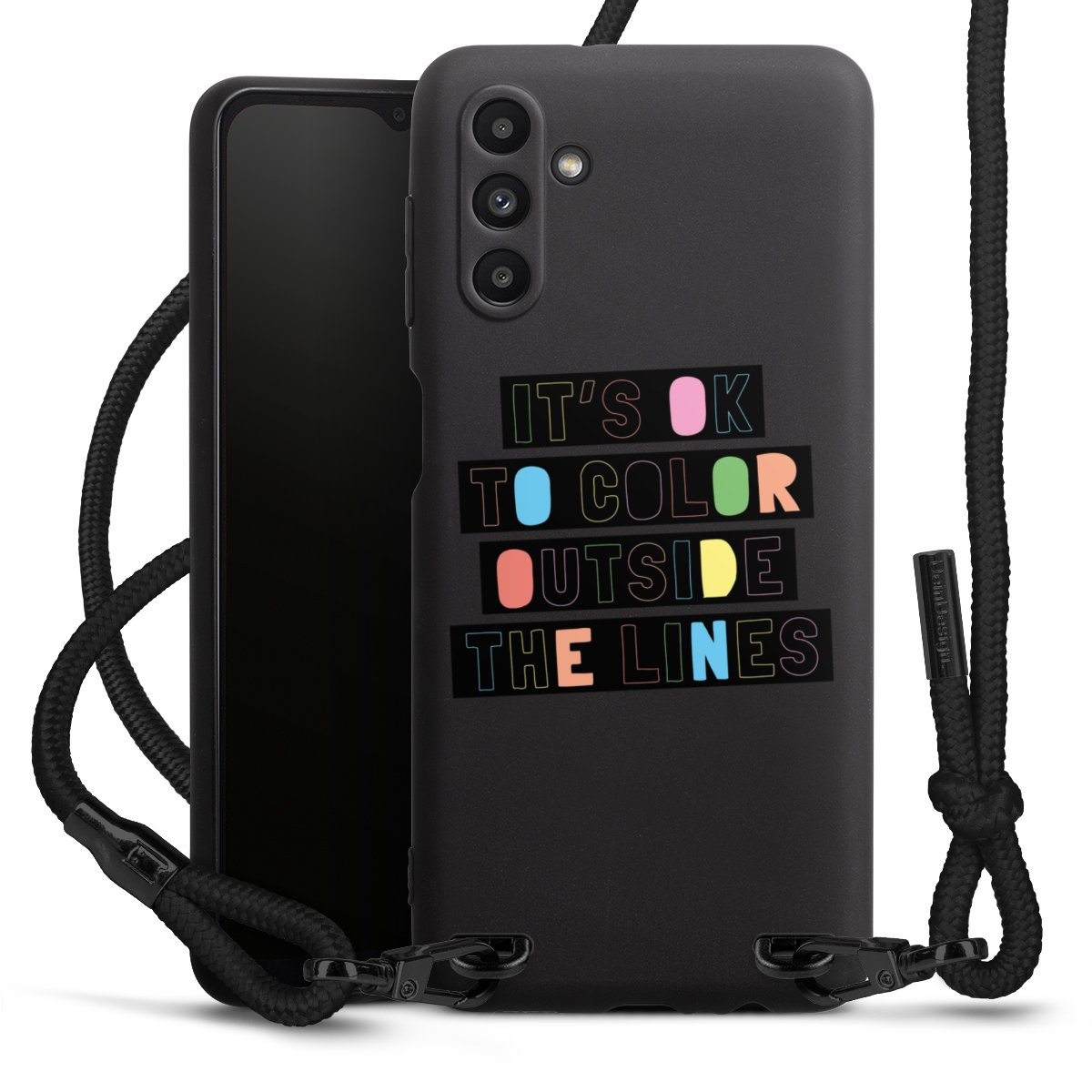 We use the solid direct print process for this phone case, which is why the print area only covers the back and the edge remains unprinted. The case to wear around your neck can be ordered unprinted, fully printed, or partially printed. For your design, either choose one of our exclusive shop motifs or get creative and create your own design, for example with photos and overlays. Design your own personal trend accessory and make an individual statement on the streets!