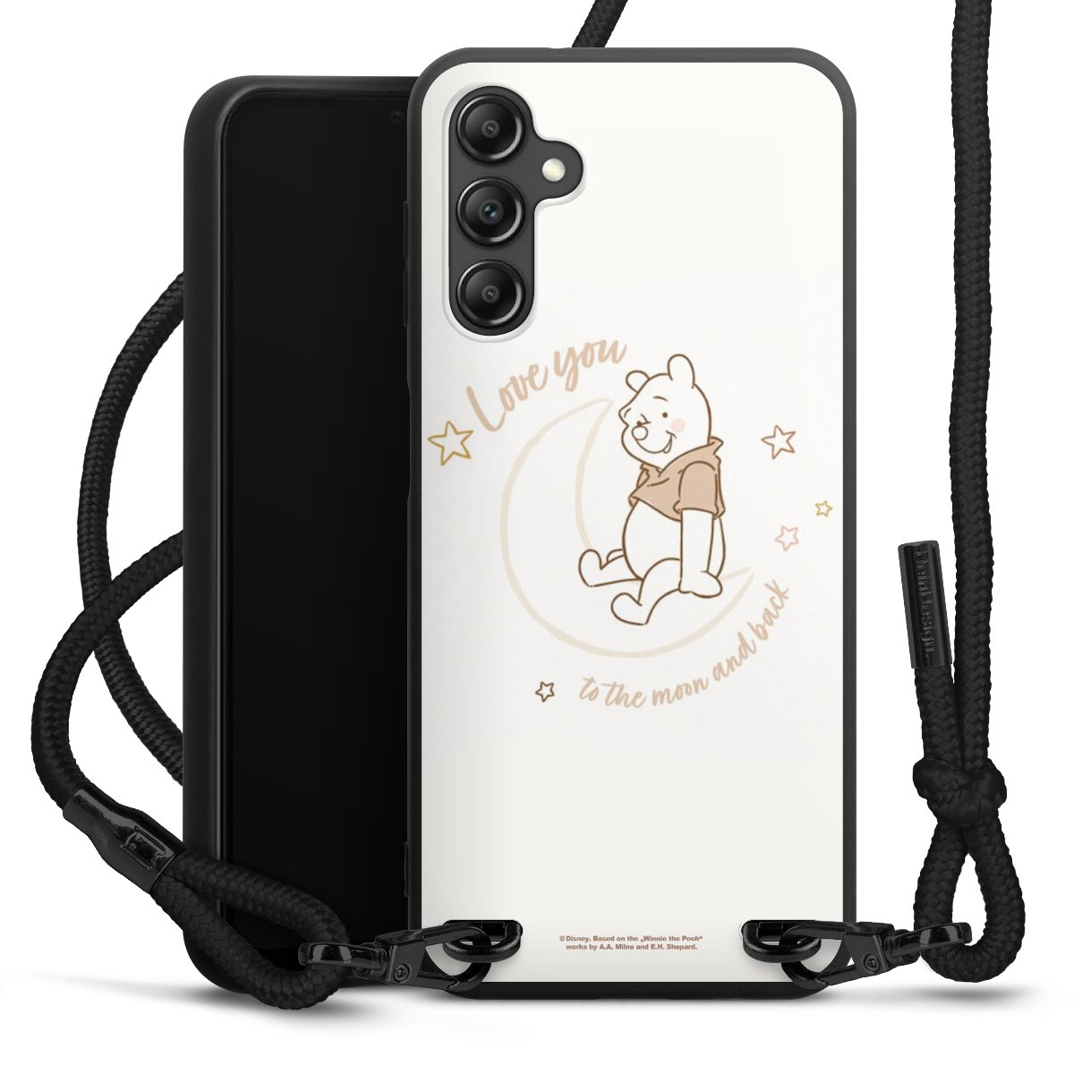 The matt black silicone case is made of flexible TPU (thermoplastic polyurethane) and offers robust protection. The durable, unbreakable material makes the cover flexible and dimensionally stable at the same time. The matte surface makes your design stand out more and is less susceptible to fingerprints and dirt. The stylish trend accessory fits comfortably in the hand and is perfectly complemented by the fabric (polyester) mobile phone strap. The braided fabric strap is approx. 1.70 metres long with a diameter of approx. 0.5 cm. Due to the special knotting technique, the length of the strap can be adjusted by simply pulling it, so that you can adapt it individually to your wishes. The practical case to wear around your neck is available with the fabric strap in black. As a little icing on the cake, we have provided the strap with a chic metal fastener in matt black. The strap is securely fastened to the case with loops made of high-quality genuine leather and press studs. The ends of the fabric strap are covered with metallic end caps and thus protected from fraying.