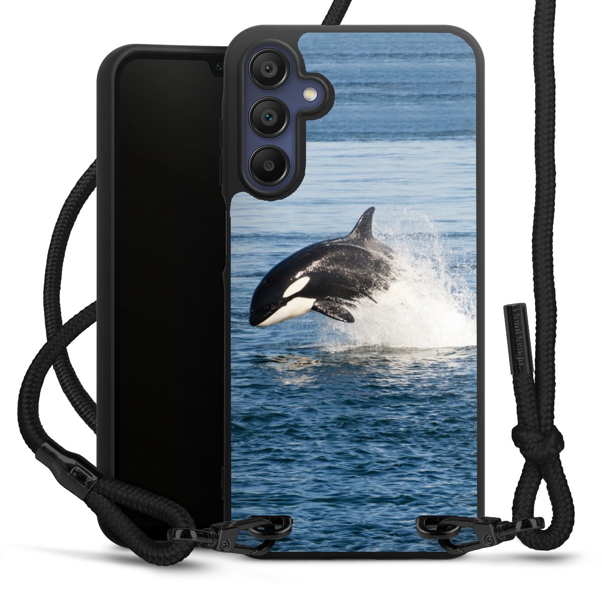 We use the solid direct print process for this phone case, which is why the print area only covers the back and the edge remains unprinted. The case to wear around your neck can be ordered unprinted, fully printed, or partially printed. For your design, either choose one of our exclusive shop motifs or get creative and create your own design, for example with photos and overlays. Design your own personal trend accessory and make an individual statement on the streets!