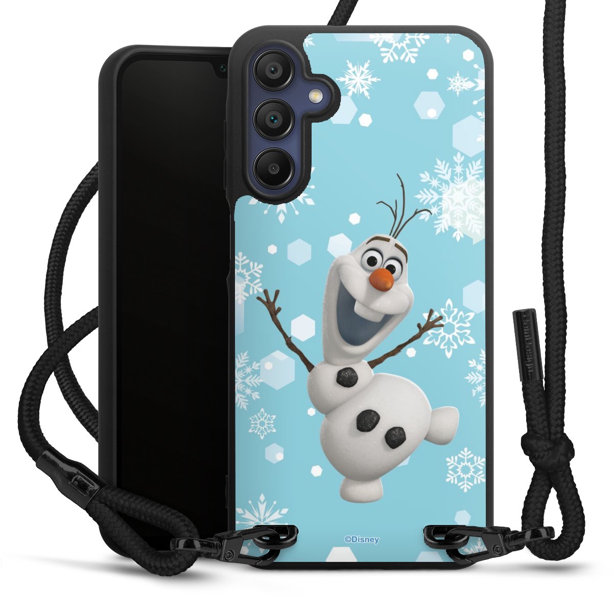 The matt black silicone case is made of flexible TPU (thermoplastic polyurethane) and offers robust protection. The durable, unbreakable material makes the cover flexible and dimensionally stable at the same time. The matte surface makes your design stand out more and is less susceptible to fingerprints and dirt. The stylish trend accessory fits comfortably in the hand and is perfectly complemented by the fabric (polyester) mobile phone strap. The braided fabric strap is approx. 1.70 metres long with a diameter of approx. 0.5 cm. Due to the special knotting technique, the length of the strap can be adjusted by simply pulling it, so that you can adapt it individually to your wishes. The practical case to wear around your neck is available with the fabric strap in black. As a little icing on the cake, we have provided the strap with a chic metal fastener in matt black. The strap is securely fastened to the case with loops made of high-quality genuine leather and press studs. The ends of the fabric strap are covered with metallic end caps and thus protected from fraying.