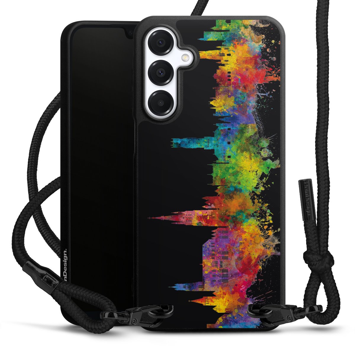 We use the solid direct print process for this phone case, which is why the print area only covers the back and the edge remains unprinted. The case to wear around your neck can be ordered unprinted, fully printed, or partially printed. For your design, either choose one of our exclusive shop motifs or get creative and create your own design, for example with photos and overlays. Design your own personal trend accessory and make an individual statement on the streets!