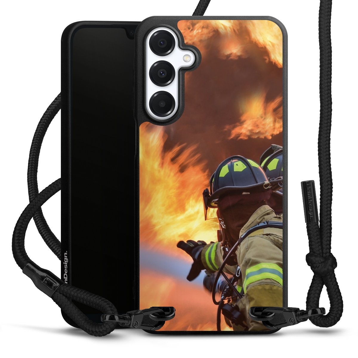 The matt black silicone case is made of flexible TPU (thermoplastic polyurethane) and offers robust protection. The durable, unbreakable material makes the cover flexible and dimensionally stable at the same time. The matte surface makes your design stand out more and is less susceptible to fingerprints and dirt. The stylish trend accessory fits comfortably in the hand and is perfectly complemented by the fabric (polyester) mobile phone strap. The braided fabric strap is approx. 1.70 metres long with a diameter of approx. 0.5 cm. Due to the special knotting technique, the length of the strap can be adjusted by simply pulling it, so that you can adapt it individually to your wishes. The practical case to wear around your neck is available with the fabric strap in black. As a little icing on the cake, we have provided the strap with a chic metal fastener in matt black. The strap is securely fastened to the case with loops made of high-quality genuine leather and press studs. The ends of the fabric strap are covered with metallic end caps and thus protected from fraying.