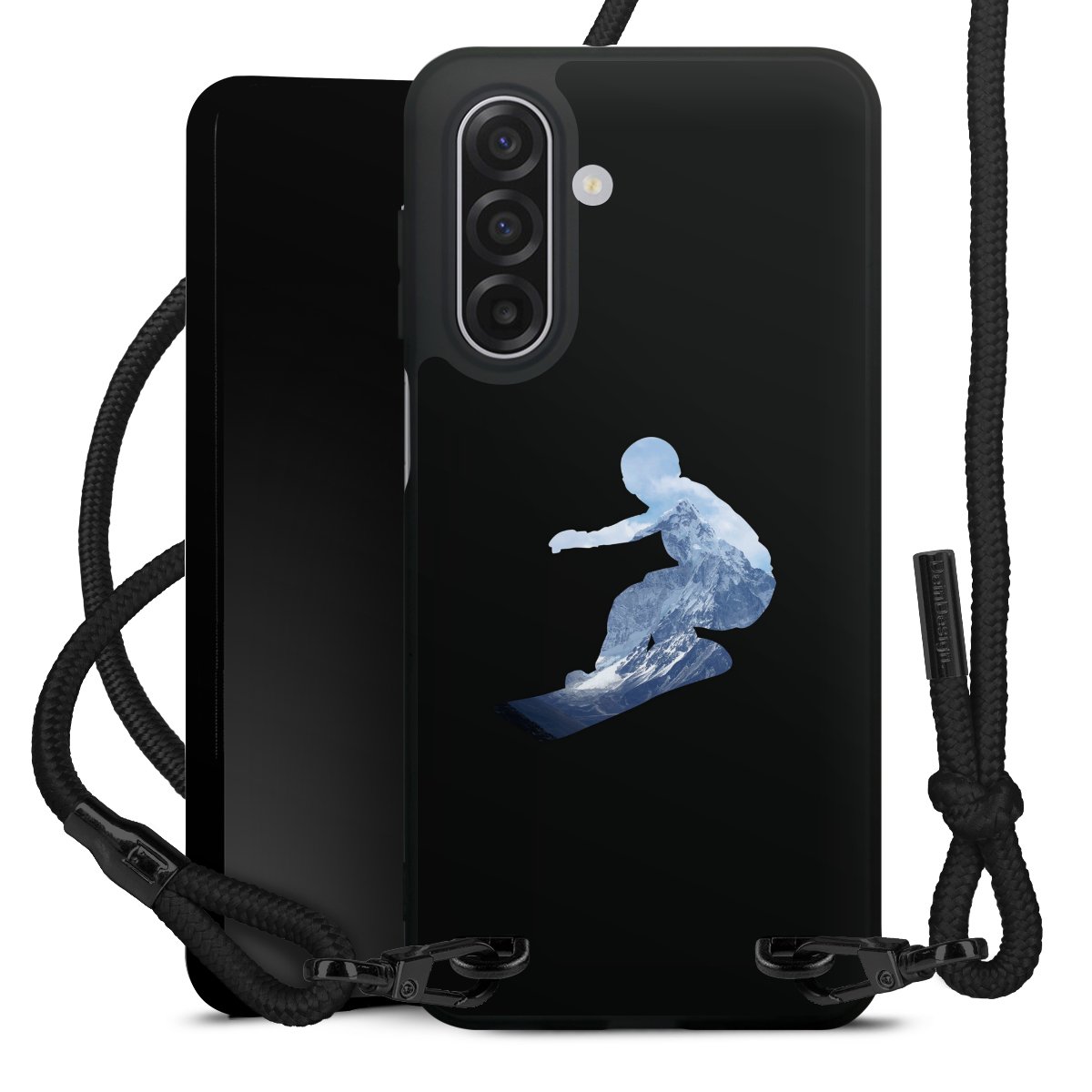 We use the solid direct print process for this phone case, which is why the print area only covers the back and the edge remains unprinted. The case to wear around your neck can be ordered unprinted, fully printed, or partially printed. For your design, either choose one of our exclusive shop motifs or get creative and create your own design, for example with photos and overlays. Design your own personal trend accessory and make an individual statement on the streets!