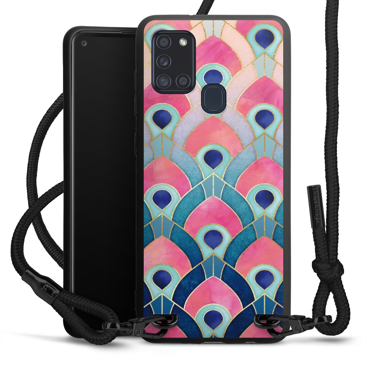 We use the solid direct print process for this phone case, which is why the print area only covers the back and the edge remains unprinted. The case to wear around your neck can be ordered unprinted, fully printed, or partially printed. For your design, either choose one of our exclusive shop motifs or get creative and create your own design, for example with photos and overlays. Design your own personal trend accessory and make an individual statement on the streets!