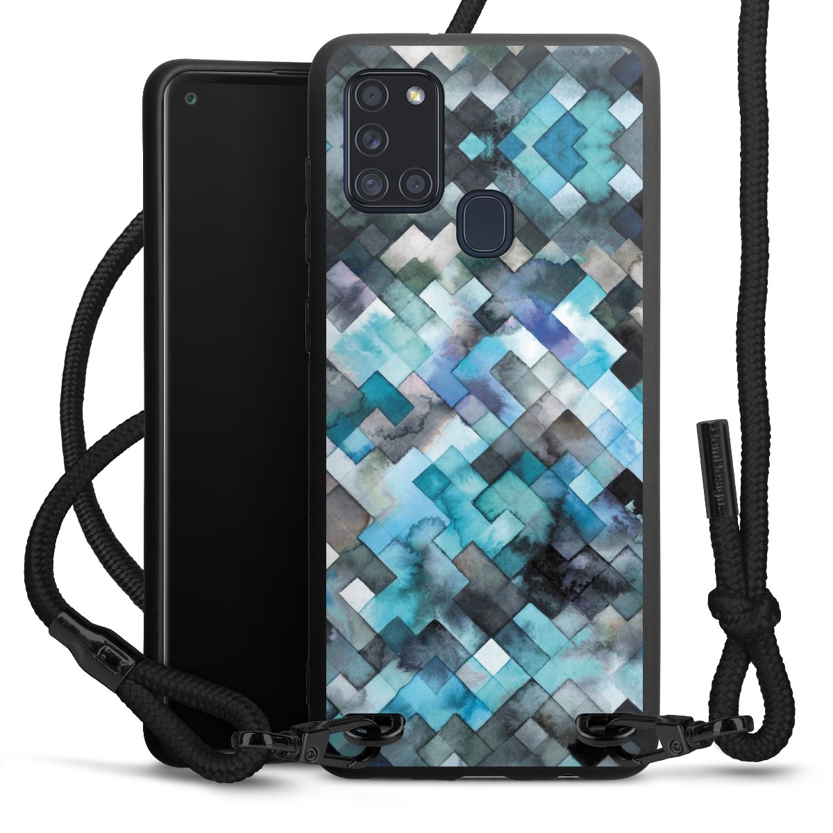 We use the solid direct print process for this phone case, which is why the print area only covers the back and the edge remains unprinted. The case to wear around your neck can be ordered unprinted, fully printed, or partially printed. For your design, either choose one of our exclusive shop motifs or get creative and create your own design, for example with photos and overlays. Design your own personal trend accessory and make an individual statement on the streets!