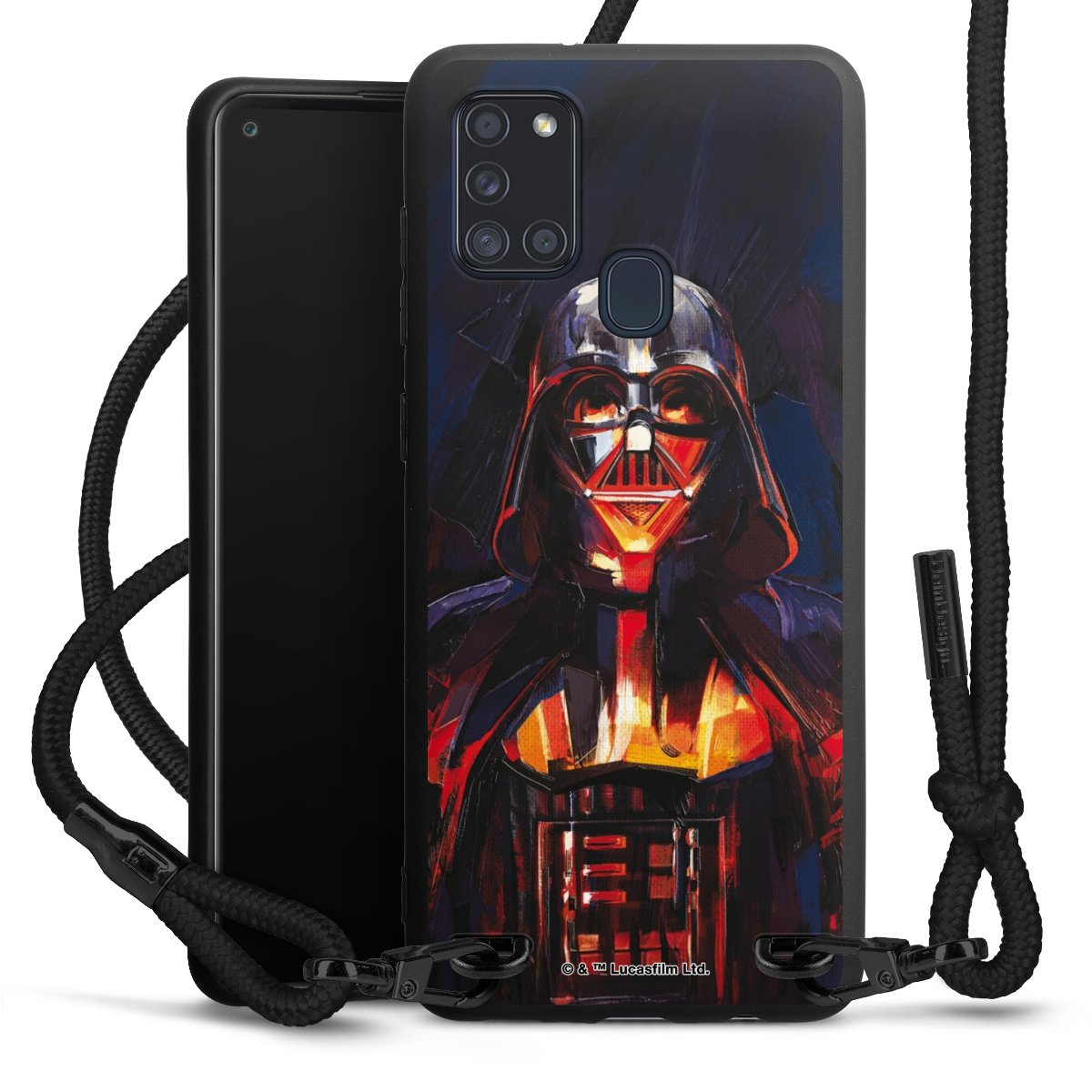 The matt black silicone case is made of flexible TPU (thermoplastic polyurethane) and offers robust protection. The durable, unbreakable material makes the cover flexible and dimensionally stable at the same time. The matte surface makes your design stand out more and is less susceptible to fingerprints and dirt. The stylish trend accessory fits comfortably in the hand and is perfectly complemented by the fabric (polyester) mobile phone strap. The braided fabric strap is approx. 1.70 metres long with a diameter of approx. 0.5 cm. Due to the special knotting technique, the length of the strap can be adjusted by simply pulling it, so that you can adapt it individually to your wishes. The practical case to wear around your neck is available with the fabric strap in black. As a little icing on the cake, we have provided the strap with a chic metal fastener in matt black. The strap is securely fastened to the case with loops made of high-quality genuine leather and press studs. The ends of the fabric strap are covered with metallic end caps and thus protected from fraying.