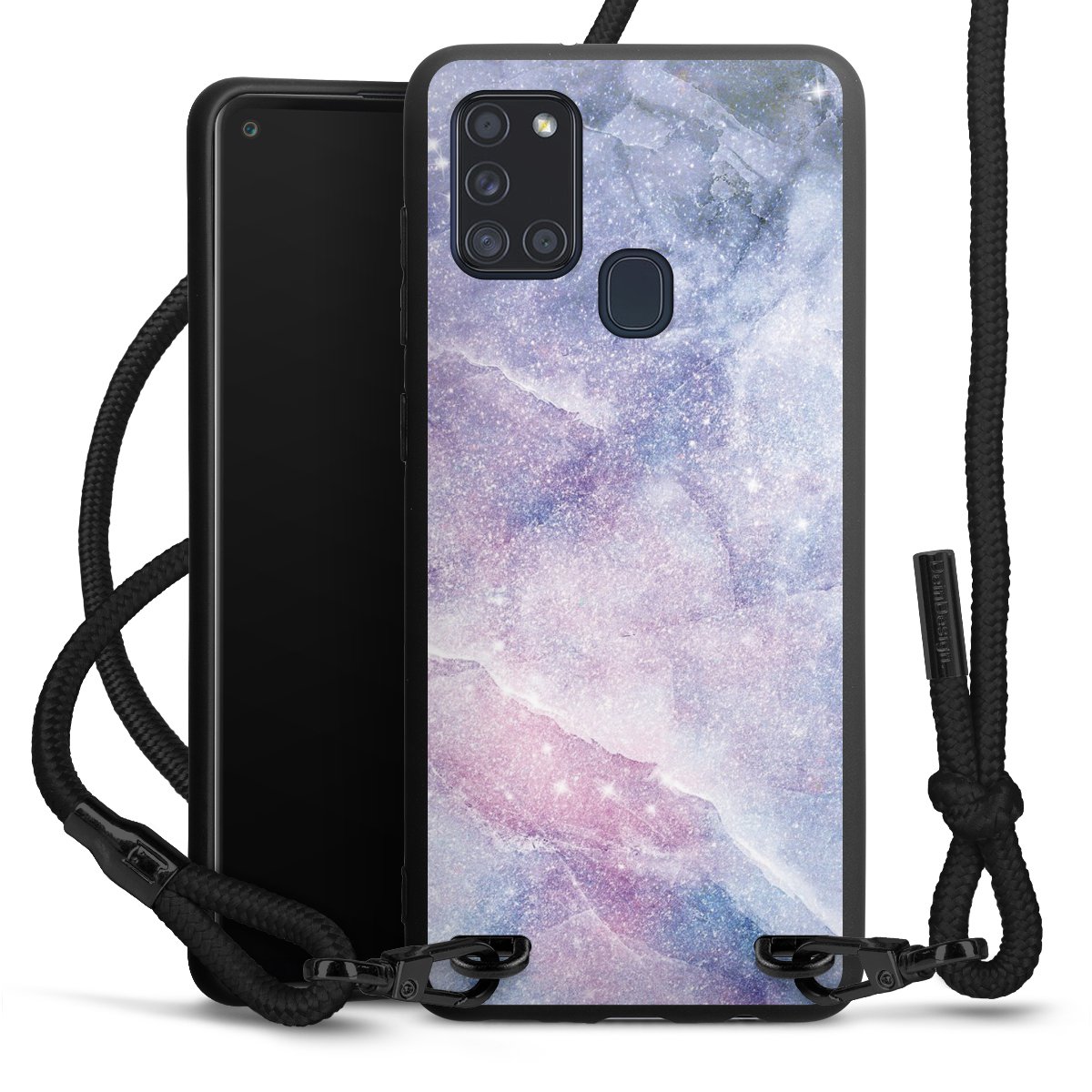 We use the solid direct print process for this phone case, which is why the print area only covers the back and the edge remains unprinted. The case to wear around your neck can be ordered unprinted, fully printed, or partially printed. For your design, either choose one of our exclusive shop motifs or get creative and create your own design, for example with photos and overlays. Design your own personal trend accessory and make an individual statement on the streets!