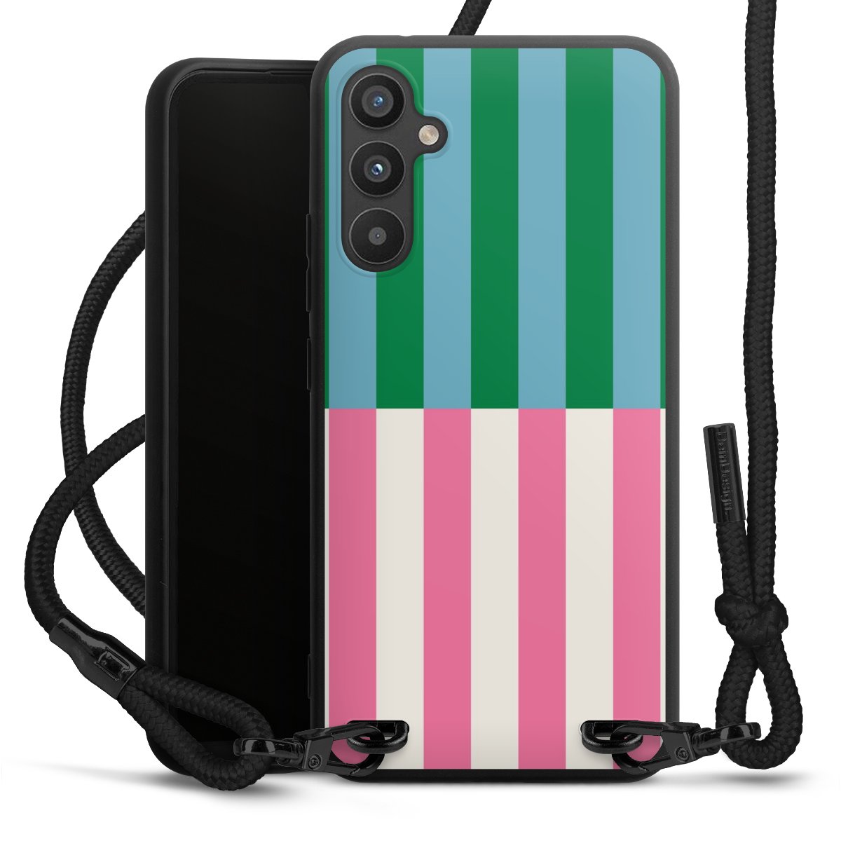 We use the solid direct print process for this phone case, which is why the print area only covers the back and the edge remains unprinted. The case to wear around your neck can be ordered unprinted, fully printed, or partially printed. For your design, either choose one of our exclusive shop motifs or get creative and create your own design, for example with photos and overlays. Design your own personal trend accessory and make an individual statement on the streets!