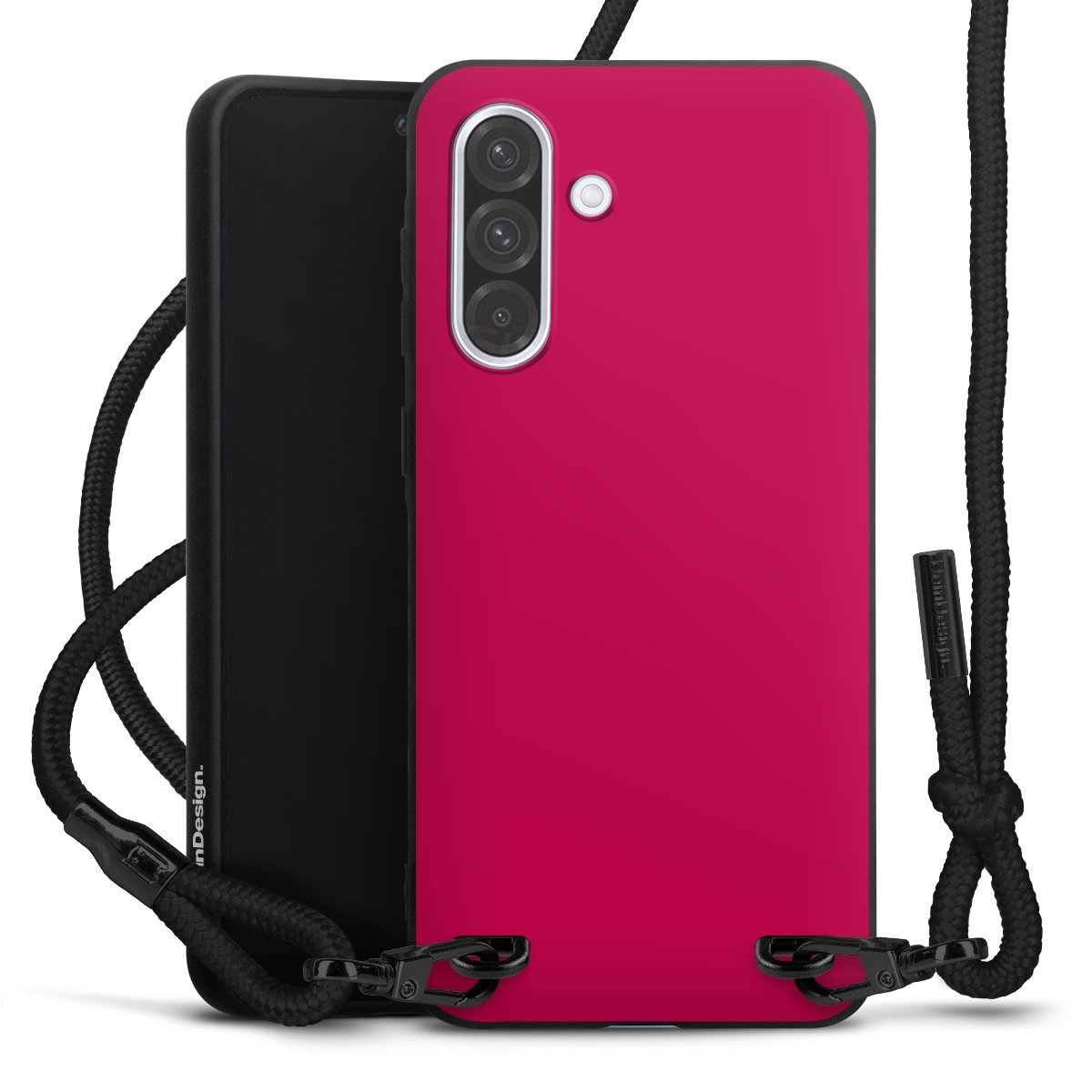 The matt black silicone case is made of flexible TPU (thermoplastic polyurethane) and offers robust protection. The durable, unbreakable material makes the cover flexible and dimensionally stable at the same time. The matte surface makes your design stand out more and is less susceptible to fingerprints and dirt. The stylish trend accessory fits comfortably in the hand and is perfectly complemented by the fabric (polyester) mobile phone strap. The braided fabric strap is approx. 1.70 metres long with a diameter of approx. 0.5 cm. Due to the special knotting technique, the length of the strap can be adjusted by simply pulling it, so that you can adapt it individually to your wishes. The practical case to wear around your neck is available with the fabric strap in black. As a little icing on the cake, we have provided the strap with a chic metal fastener in matt black. The strap is securely fastened to the case with loops made of high-quality genuine leather and press studs. The ends of the fabric strap are covered with metallic end caps and thus protected from fraying.