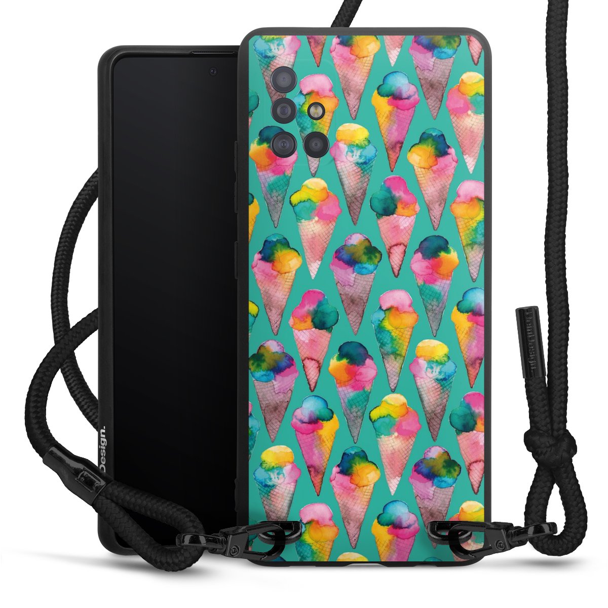 We use the solid direct print process for this phone case, which is why the print area only covers the back and the edge remains unprinted. The case to wear around your neck can be ordered unprinted, fully printed, or partially printed. For your design, either choose one of our exclusive shop motifs or get creative and create your own design, for example with photos and overlays. Design your own personal trend accessory and make an individual statement on the streets!