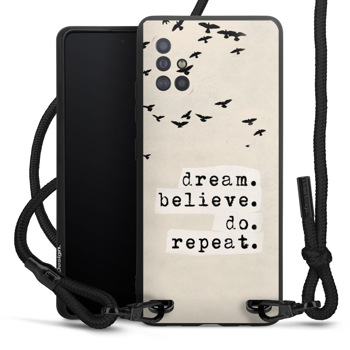 We use the solid direct print process for this phone case, which is why the print area only covers the back and the edge remains unprinted. The case to wear around your neck can be ordered unprinted, fully printed, or partially printed. For your design, either choose one of our exclusive shop motifs or get creative and create your own design, for example with photos and overlays. Design your own personal trend accessory and make an individual statement on the streets!