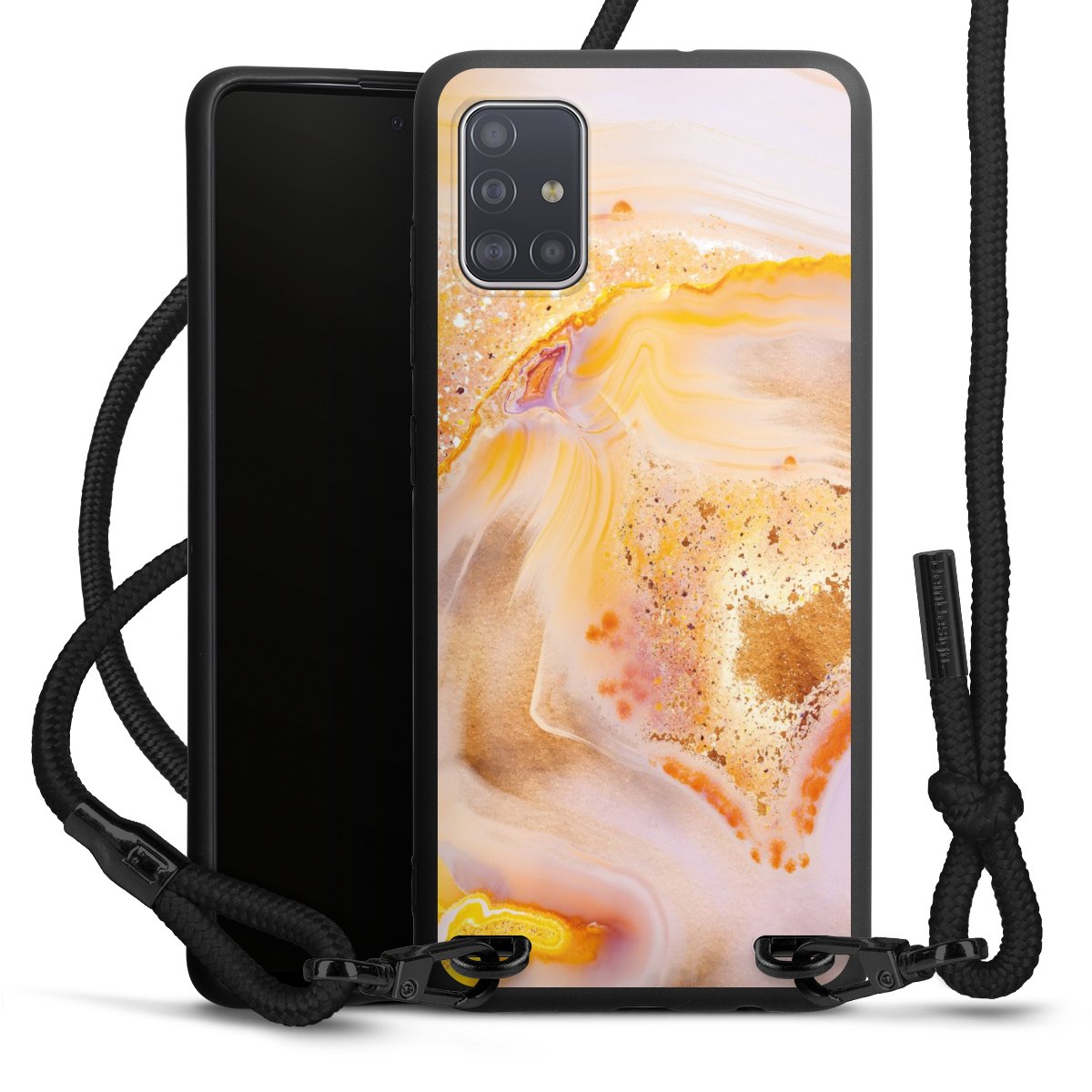 We use the solid direct print process for this phone case, which is why the print area only covers the back and the edge remains unprinted. The case to wear around your neck can be ordered unprinted, fully printed, or partially printed. For your design, either choose one of our exclusive shop motifs or get creative and create your own design, for example with photos and overlays. Design your own personal trend accessory and make an individual statement on the streets!