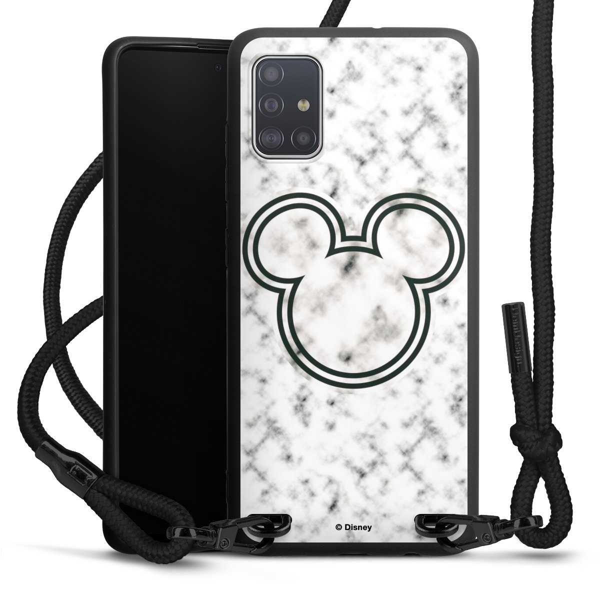 The matt black silicone case is made of flexible TPU (thermoplastic polyurethane) and offers robust protection. The durable, unbreakable material makes the cover flexible and dimensionally stable at the same time. The matte surface makes your design stand out more and is less susceptible to fingerprints and dirt. The stylish trend accessory fits comfortably in the hand and is perfectly complemented by the fabric (polyester) mobile phone strap. The braided fabric strap is approx. 1.70 metres long with a diameter of approx. 0.5 cm. Due to the special knotting technique, the length of the strap can be adjusted by simply pulling it, so that you can adapt it individually to your wishes. The practical case to wear around your neck is available with the fabric strap in black. As a little icing on the cake, we have provided the strap with a chic metal fastener in matt black. The strap is securely fastened to the case with loops made of high-quality genuine leather and press studs. The ends of the fabric strap are covered with metallic end caps and thus protected from fraying.