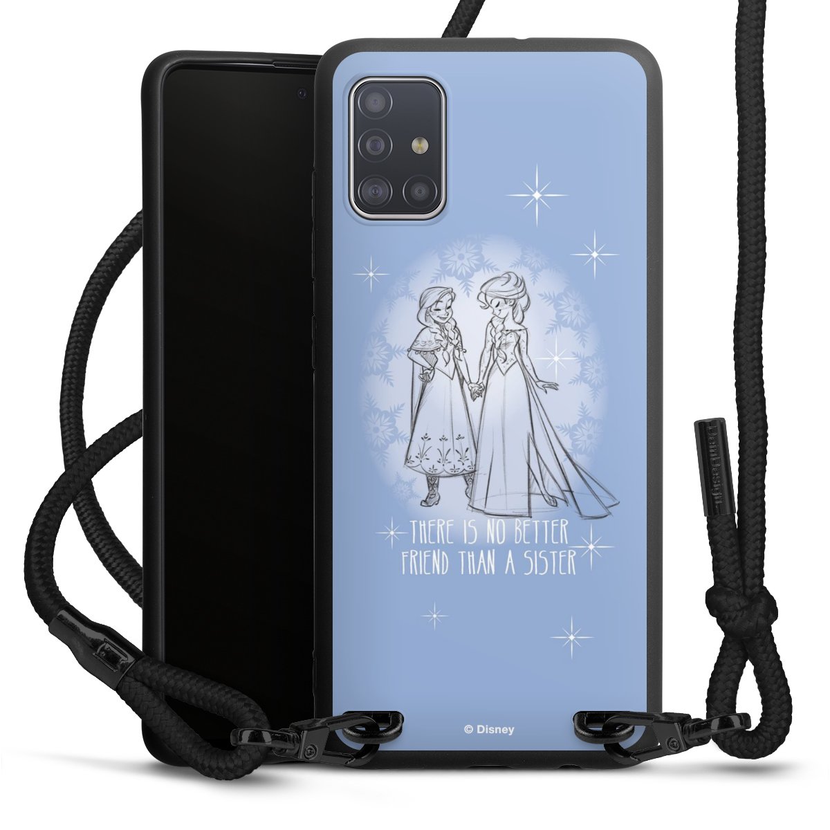 The matt black silicone case is made of flexible TPU (thermoplastic polyurethane) and offers robust protection. The durable, unbreakable material makes the cover flexible and dimensionally stable at the same time. The matte surface makes your design stand out more and is less susceptible to fingerprints and dirt. The stylish trend accessory fits comfortably in the hand and is perfectly complemented by the fabric (polyester) mobile phone strap. The braided fabric strap is approx. 1.70 metres long with a diameter of approx. 0.5 cm. Due to the special knotting technique, the length of the strap can be adjusted by simply pulling it, so that you can adapt it individually to your wishes. The practical case to wear around your neck is available with the fabric strap in black. As a little icing on the cake, we have provided the strap with a chic metal fastener in matt black. The strap is securely fastened to the case with loops made of high-quality genuine leather and press studs. The ends of the fabric strap are covered with metallic end caps and thus protected from fraying.