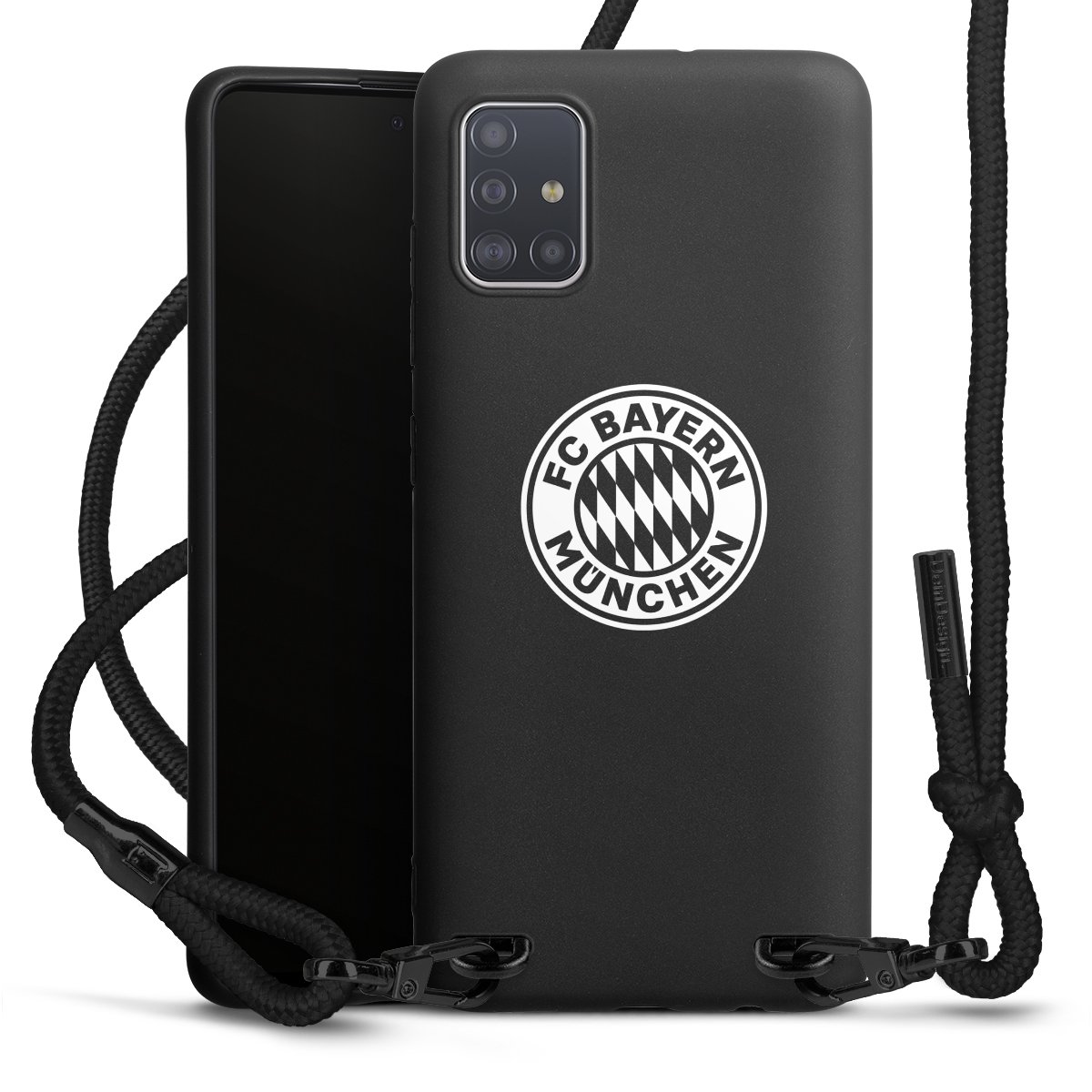 The matt black silicone case is made of flexible TPU (thermoplastic polyurethane) and offers robust protection. The durable, unbreakable material makes the cover flexible and dimensionally stable at the same time. The matte surface makes your design stand out more and is less susceptible to fingerprints and dirt. The stylish trend accessory fits comfortably in the hand and is perfectly complemented by the fabric (polyester) mobile phone strap. The braided fabric strap is approx. 1.70 metres long with a diameter of approx. 0.5 cm. Due to the special knotting technique, the length of the strap can be adjusted by simply pulling it, so that you can adapt it individually to your wishes. The practical case to wear around your neck is available with the fabric strap in black. As a little icing on the cake, we have provided the strap with a chic metal fastener in matt black. The strap is securely fastened to the case with loops made of high-quality genuine leather and press studs. The ends of the fabric strap are covered with metallic end caps and thus protected from fraying.
