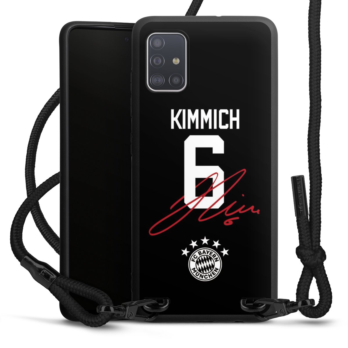 The matt black silicone case is made of flexible TPU (thermoplastic polyurethane) and offers robust protection. The durable, unbreakable material makes the cover flexible and dimensionally stable at the same time. The matte surface makes your design stand out more and is less susceptible to fingerprints and dirt. The stylish trend accessory fits comfortably in the hand and is perfectly complemented by the fabric (polyester) mobile phone strap. The braided fabric strap is approx. 1.70 metres long with a diameter of approx. 0.5 cm. Due to the special knotting technique, the length of the strap can be adjusted by simply pulling it, so that you can adapt it individually to your wishes. The practical case to wear around your neck is available with the fabric strap in black. As a little icing on the cake, we have provided the strap with a chic metal fastener in matt black. The strap is securely fastened to the case with loops made of high-quality genuine leather and press studs. The ends of the fabric strap are covered with metallic end caps and thus protected from fraying.