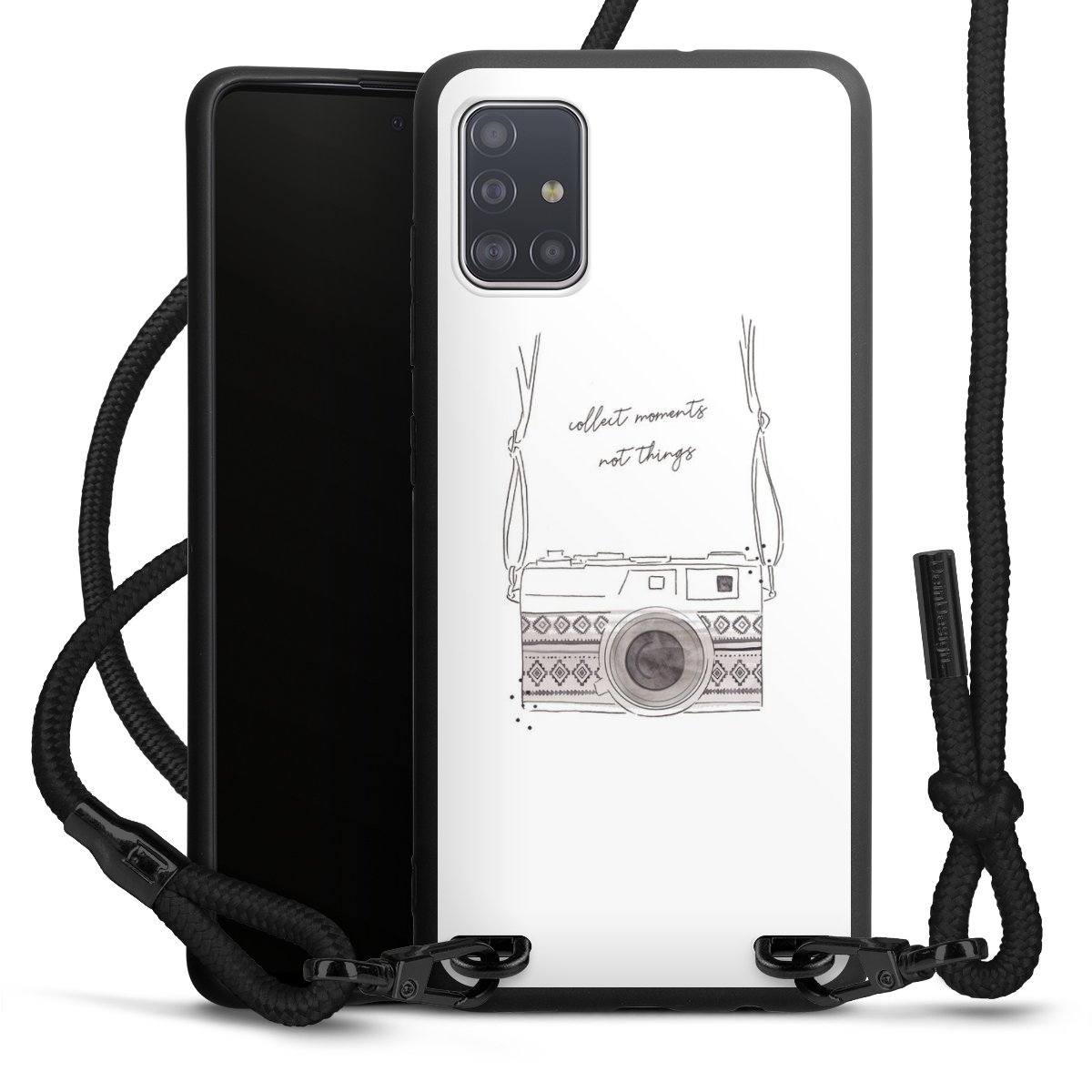 We use the solid direct print process for this phone case, which is why the print area only covers the back and the edge remains unprinted. The case to wear around your neck can be ordered unprinted, fully printed, or partially printed. For your design, either choose one of our exclusive shop motifs or get creative and create your own design, for example with photos and overlays. Design your own personal trend accessory and make an individual statement on the streets!
