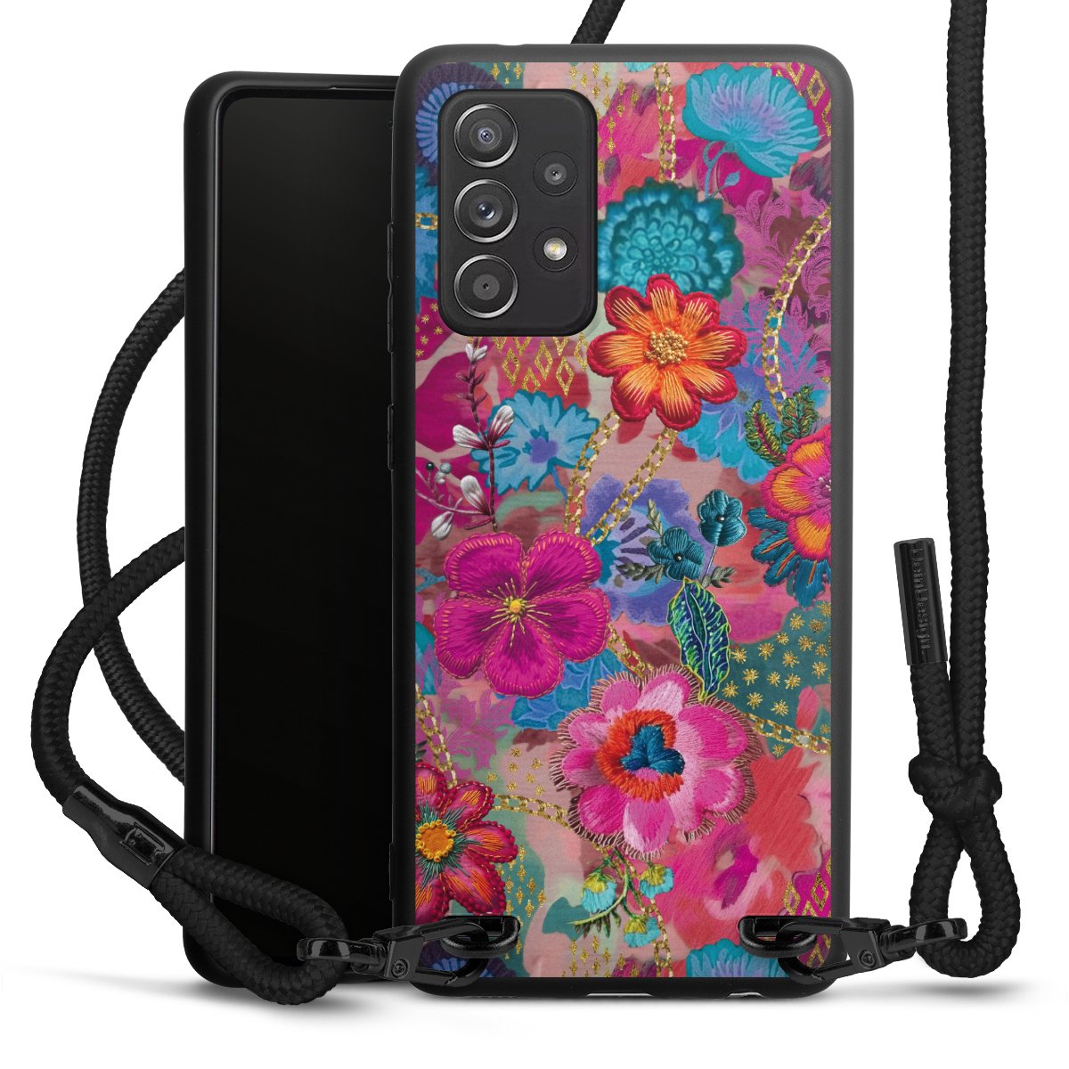 We use the solid direct print process for this phone case, which is why the print area only covers the back and the edge remains unprinted. The case to wear around your neck can be ordered unprinted, fully printed, or partially printed. For your design, either choose one of our exclusive shop motifs or get creative and create your own design, for example with photos and overlays. Design your own personal trend accessory and make an individual statement on the streets!