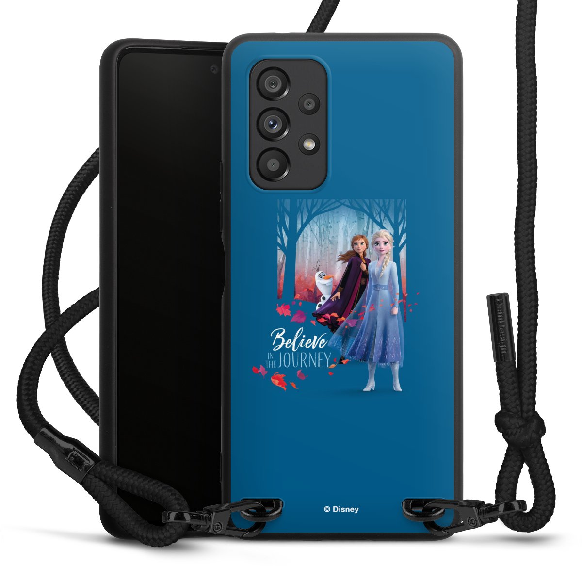The matt black silicone case is made of flexible TPU (thermoplastic polyurethane) and offers robust protection. The durable, unbreakable material makes the cover flexible and dimensionally stable at the same time. The matte surface makes your design stand out more and is less susceptible to fingerprints and dirt. The stylish trend accessory fits comfortably in the hand and is perfectly complemented by the fabric (polyester) mobile phone strap. The braided fabric strap is approx. 1.70 metres long with a diameter of approx. 0.5 cm. Due to the special knotting technique, the length of the strap can be adjusted by simply pulling it, so that you can adapt it individually to your wishes. The practical case to wear around your neck is available with the fabric strap in black. As a little icing on the cake, we have provided the strap with a chic metal fastener in matt black. The strap is securely fastened to the case with loops made of high-quality genuine leather and press studs. The ends of the fabric strap are covered with metallic end caps and thus protected from fraying.