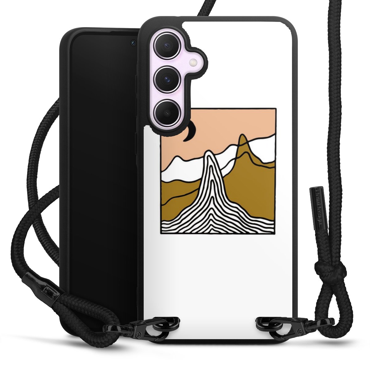 We use the solid direct print process for this phone case, which is why the print area only covers the back and the edge remains unprinted. The case to wear around your neck can be ordered unprinted, fully printed, or partially printed. For your design, either choose one of our exclusive shop motifs or get creative and create your own design, for example with photos and overlays. Design your own personal trend accessory and make an individual statement on the streets!