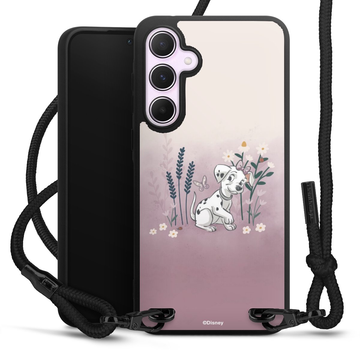 The matt black silicone case is made of flexible TPU (thermoplastic polyurethane) and offers robust protection. The durable, unbreakable material makes the cover flexible and dimensionally stable at the same time. The matte surface makes your design stand out more and is less susceptible to fingerprints and dirt. The stylish trend accessory fits comfortably in the hand and is perfectly complemented by the fabric (polyester) mobile phone strap. The braided fabric strap is approx. 1.70 metres long with a diameter of approx. 0.5 cm. Due to the special knotting technique, the length of the strap can be adjusted by simply pulling it, so that you can adapt it individually to your wishes. The practical case to wear around your neck is available with the fabric strap in black. As a little icing on the cake, we have provided the strap with a chic metal fastener in matt black. The strap is securely fastened to the case with loops made of high-quality genuine leather and press studs. The ends of the fabric strap are covered with metallic end caps and thus protected from fraying.