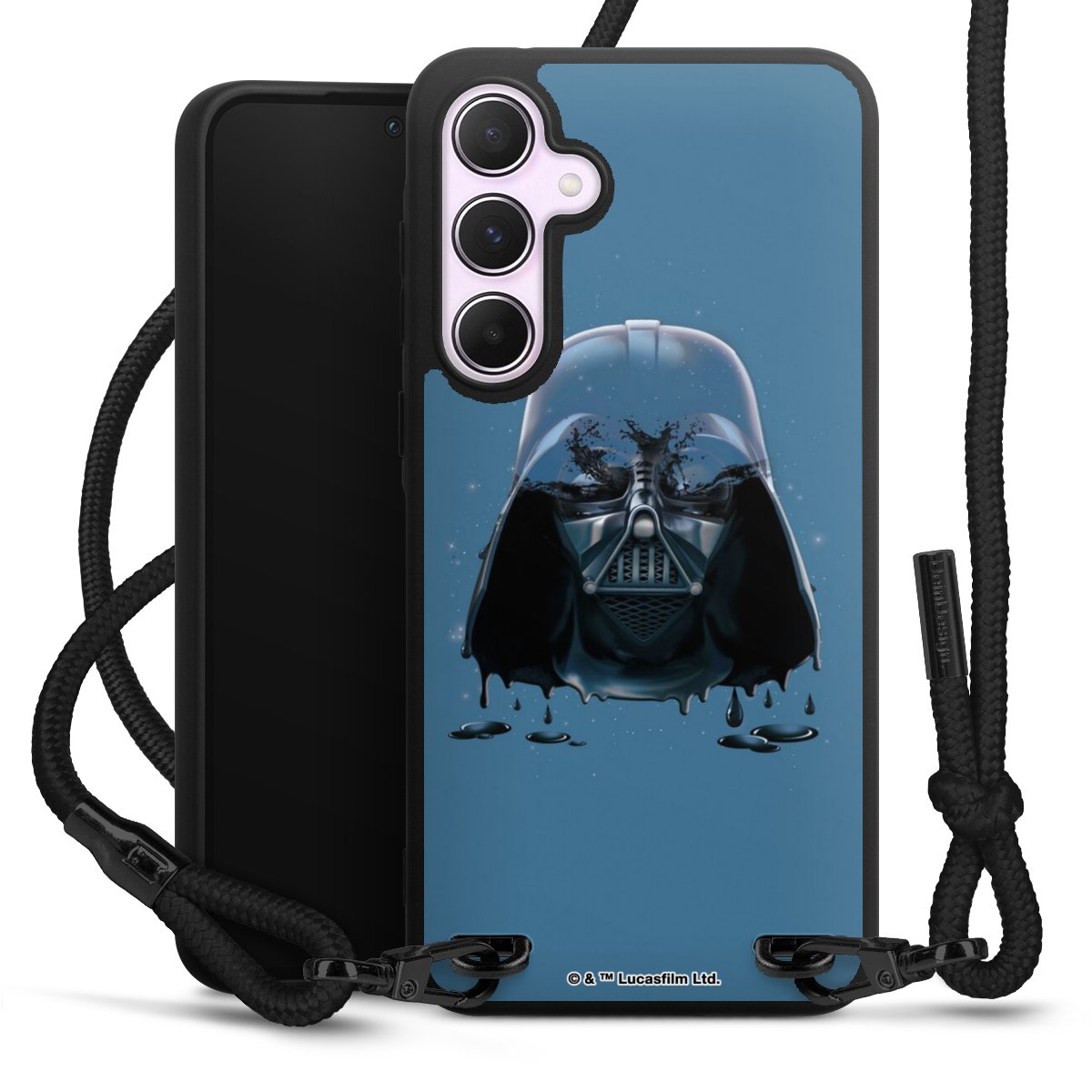 Pure Black: Phone case, fabric strap and metal details in stylish matt black.