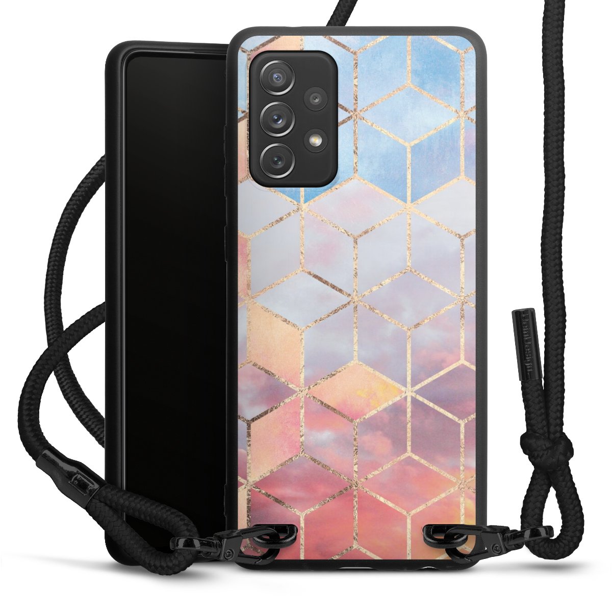 We use the solid direct print process for this phone case, which is why the print area only covers the back and the edge remains unprinted. The case to wear around your neck can be ordered unprinted, fully printed, or partially printed. For your design, either choose one of our exclusive shop motifs or get creative and create your own design, for example with photos and overlays. Design your own personal trend accessory and make an individual statement on the streets!