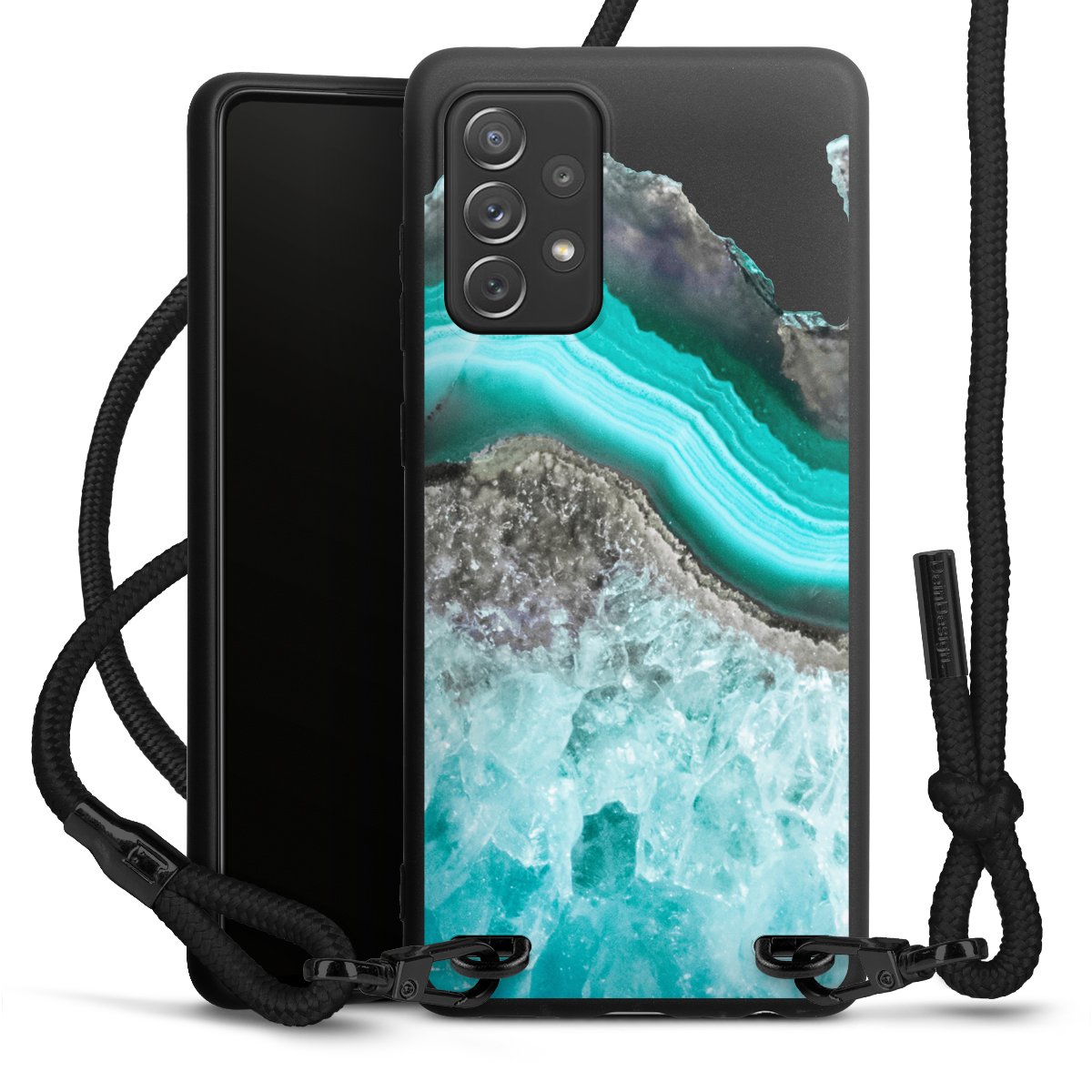 We use the solid direct print process for this phone case, which is why the print area only covers the back and the edge remains unprinted. The case to wear around your neck can be ordered unprinted, fully printed, or partially printed. For your design, either choose one of our exclusive shop motifs or get creative and create your own design, for example with photos and overlays. Design your own personal trend accessory and make an individual statement on the streets!